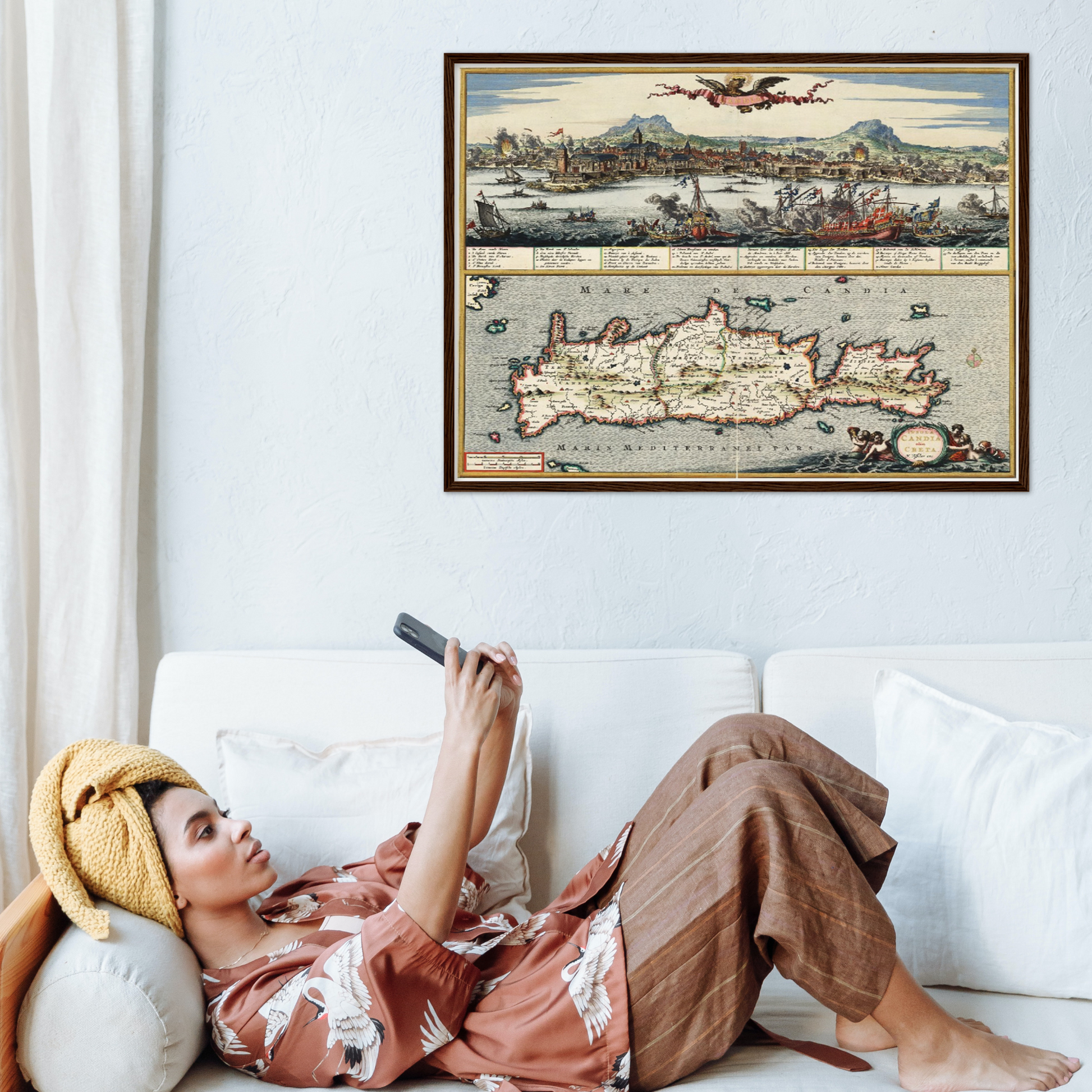 Diese wunderbare Reproduktion der Historischen Landkarte Kreta aus dem Jahr 1668 bringt die faszinierende Geschichte der Insel direkt in Dein Zuhause.
