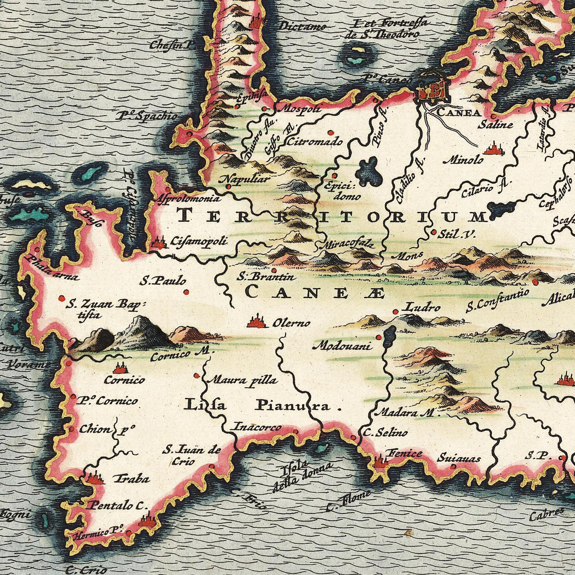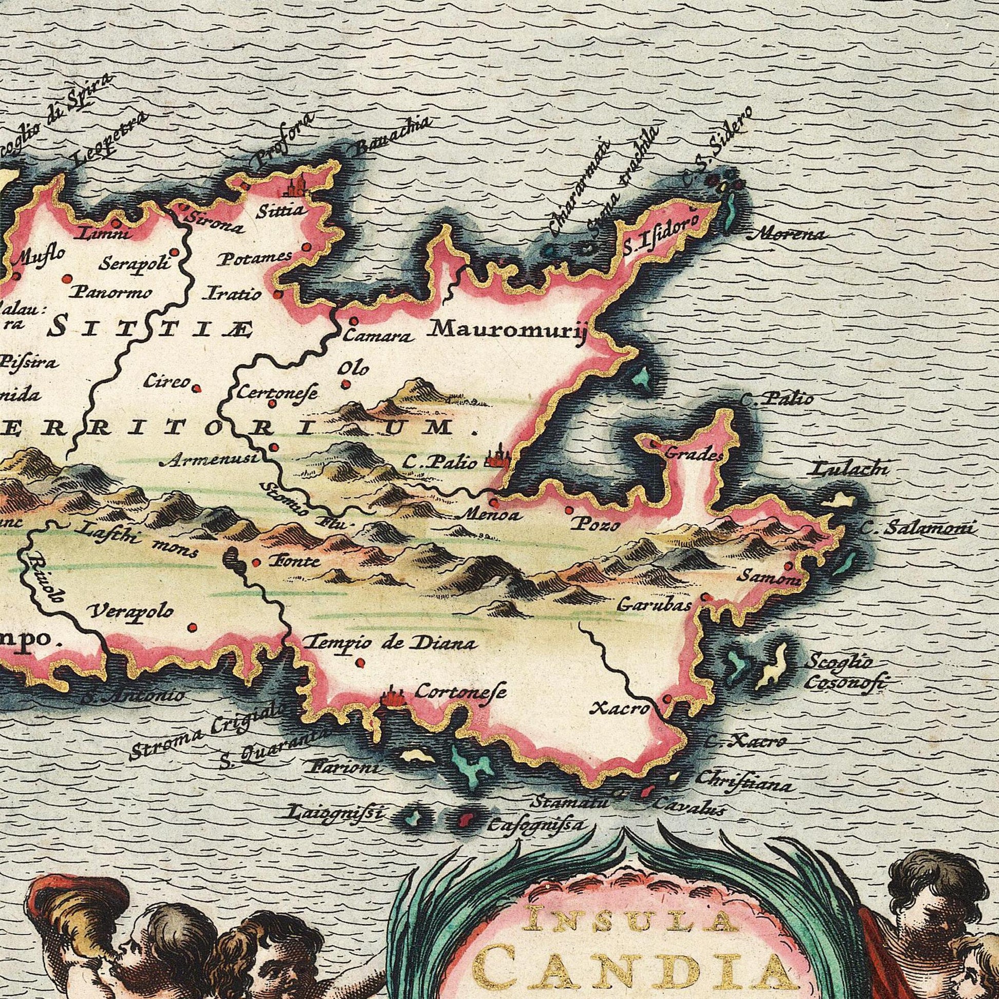 1668 war eine Zeit voller Wandel und Entdeckungen. Die Insel Kreta stand im Fokus zahlreicher politischer und kultureller Entwicklungen und war ein Schnittpunkt der Zivilisationen. Diese Karte wurde von einem der führenden Kartographen jener Epoche geschaffen und besticht durch ihre Präzision und künstlerische Raffinesse. Details wie alte Handelsrouten und geographische Besonderheiten sind meisterlich in Szene gesetzt. Solche Karten sind nicht nur Zeugnisse vergangener Zeiten, sondern bieten auch wertvolle Einblicke in das Weltbild jener Ära. Heute gelten sie als kulturelle Schätze, die das Verständnis unserer geschichtlichen Wurzeln bereichern und ein unvergleichliches Stück Geschichte zugänglich machen.