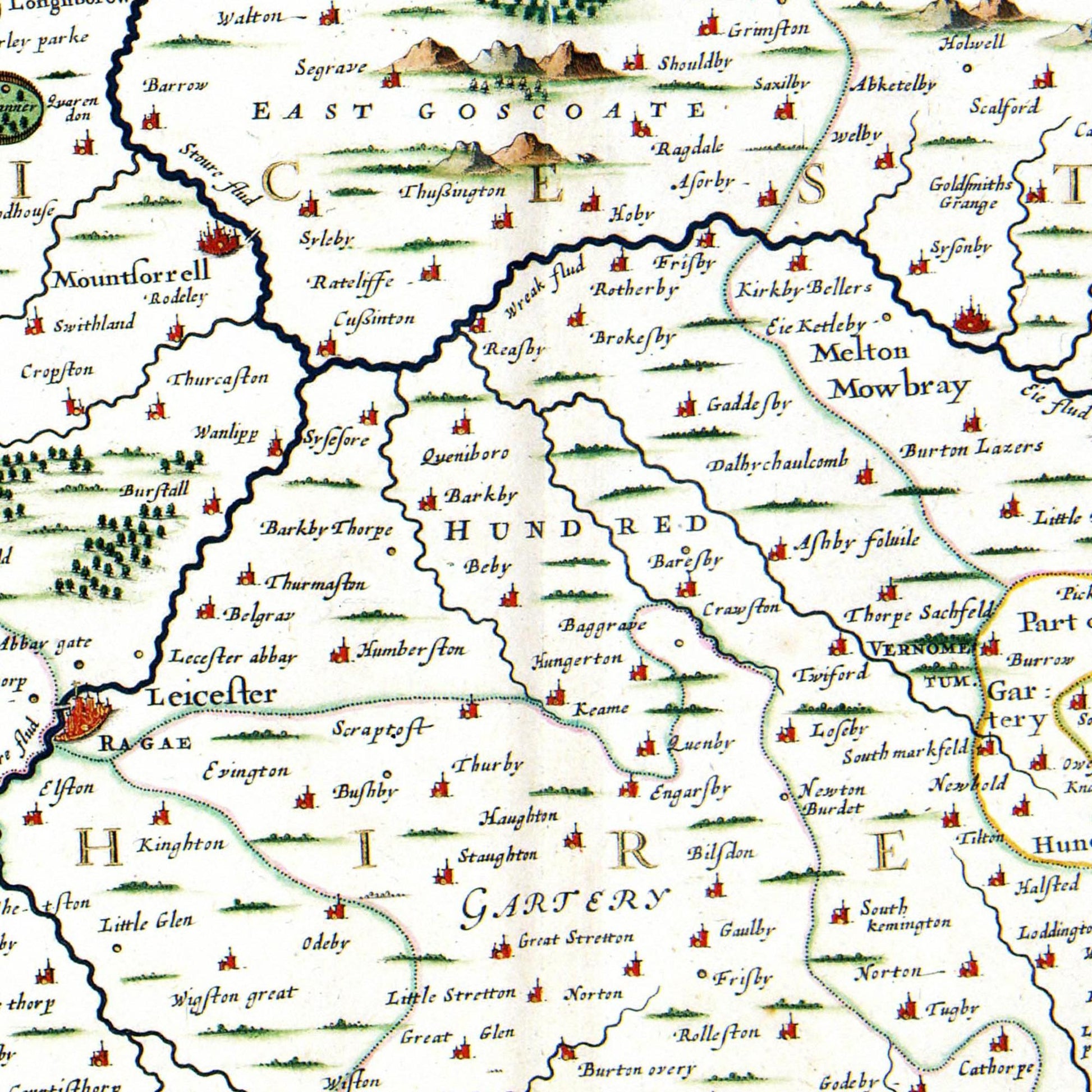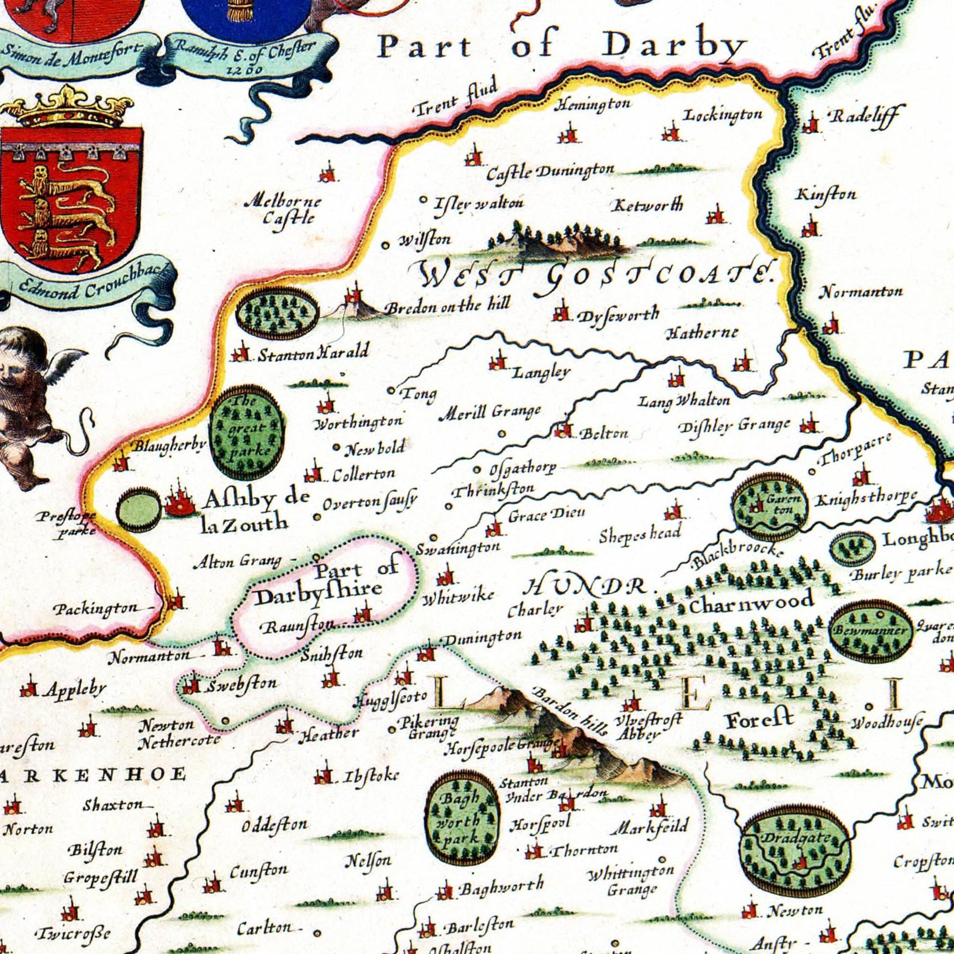 Entdecken Sie die faszinierende Vergangenheit von Leicestershire mit dieser detaillierten Nachbildung der Historische Landkarte Leicestershire um 1646 - ein Kunstwerk, das Geschichte und Eleganz in Ihr Zuhause bringt.