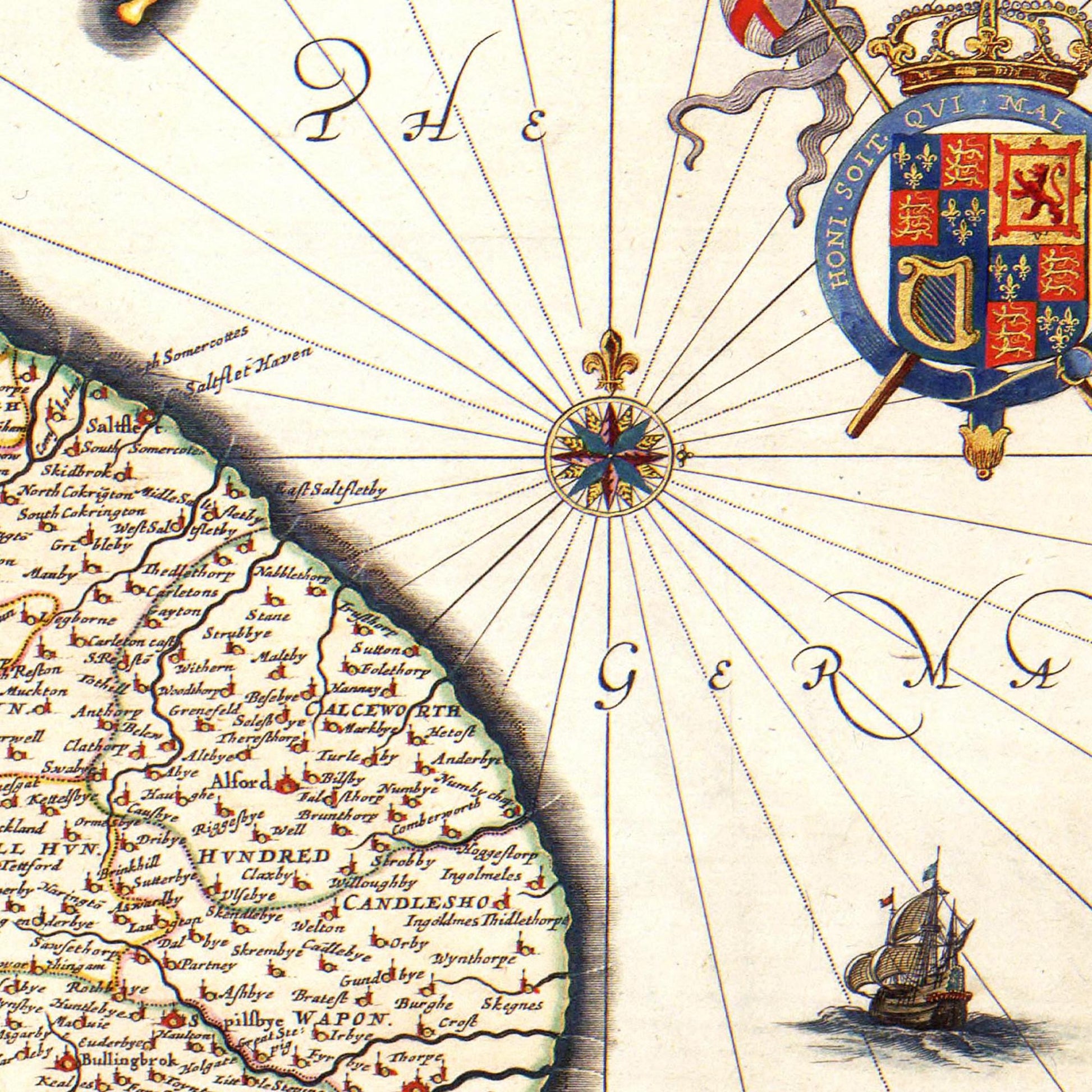 Entdecken Sie das bezaubernde Lincolnshire des Jahres 1646 mit dieser präzisen und kunstvollen historischen Landkarte.