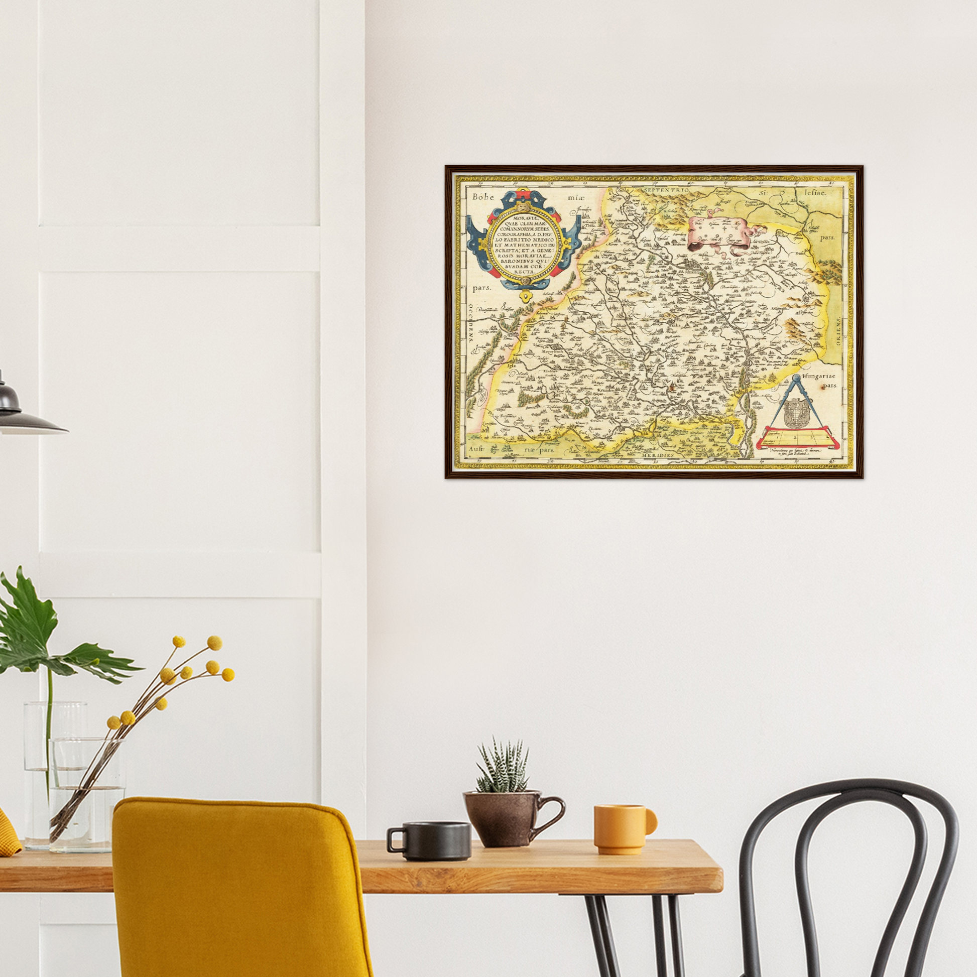 Stell Dir vor, wie die Region Mähren um das Jahr 1609 ausgesehen haben mag – eine Zeit geprägt von historischen Umbrüchen und kultureller Blüte. Diese historische Landkarte vereint nicht nur die geografische Präzision ihrer Zeit, sondern auch die künstlerische Ästhetik alter Gravurtechniken. Die feinen Linien und der Charakter des Drucks verleihen der Karte einen künstlerischen Zauber, der weit über die bloße Abbildung hinausgeht. Dieses Stück ist mehr als nur eine Karte; es ist ein Fenster in eine andere Zeit, das es ermöglicht, die Geschichte mit den Augen der Menschen von damals zu sehen und zu erleben. Lass Dich von diesem historischen Zeugnis inspirieren und bringe ein Stück der europäischen Geschichte in Dein Zuhause.
