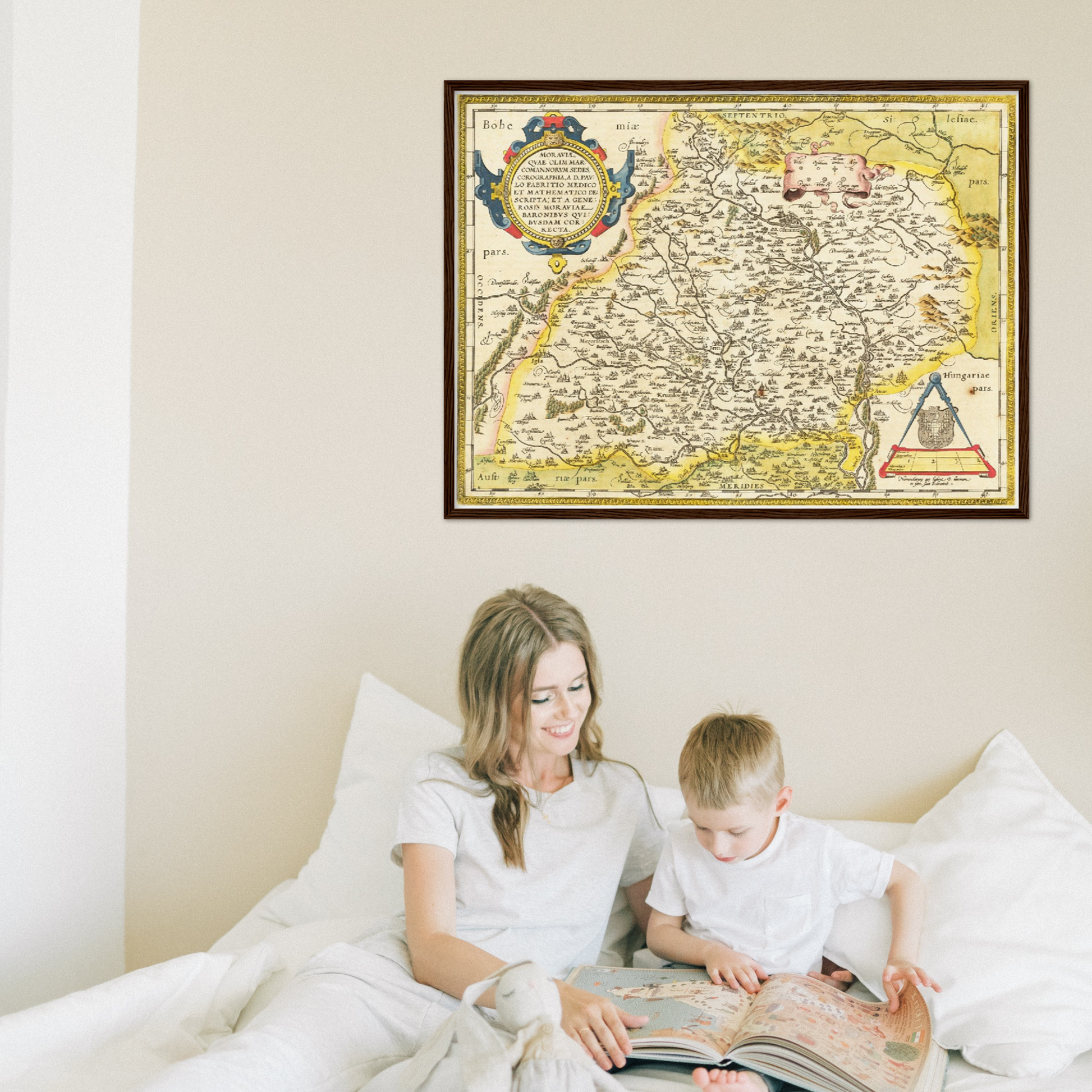 Für viele unserer Kunden ist diese Karte von Mähren mehr als nur eine ästhetische Bereicherung ihrer Räume; sie ist ein emotionales Verbindungsstück. Oft wird sie gewählt, um Erlebnisse und Erinnerungen an eine Region wachzuhalten, die für manche mit ihrer Herkunft oder persönlichen Geschichten verbunden ist. Sei es als Geschenk für jemanden, der in dieser Region verwurzelt ist, oder als persönliches Andenken an einen besonderen Ort – diese Karte trägt eine emotionale Tiefe in sich, die Menschen miteinander verbindet und Geschichten weitererzählt. Lassen Sie dieses historische Juwel zum Gesprächsstoff in Ihrem Zuhause werden oder wählen Sie es als durchdachtes Geschenk für jemanden, der eine Verbindung zu diesem faszinierenden Landstrich hat.