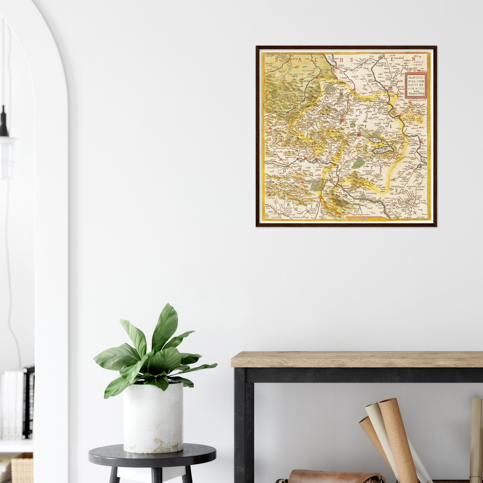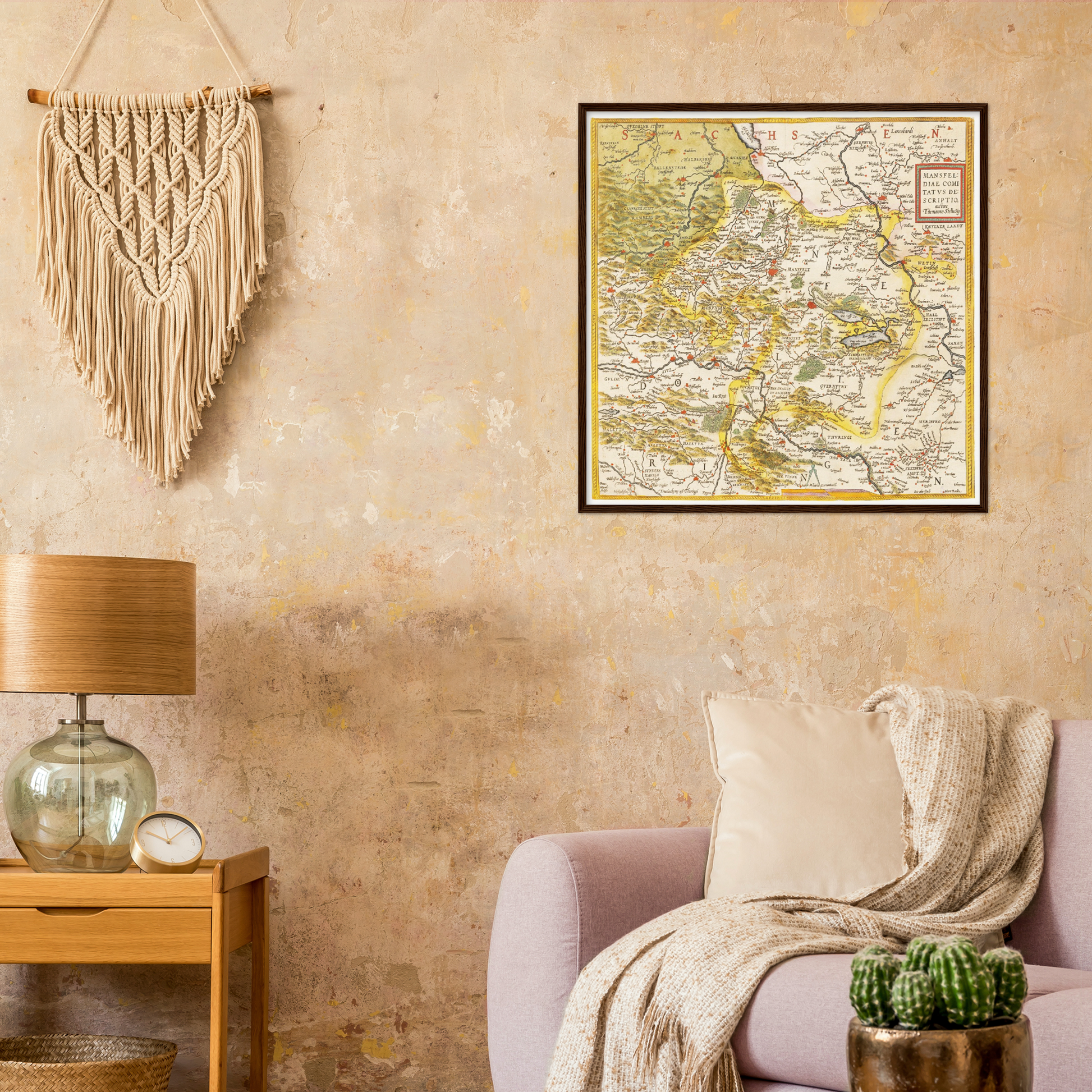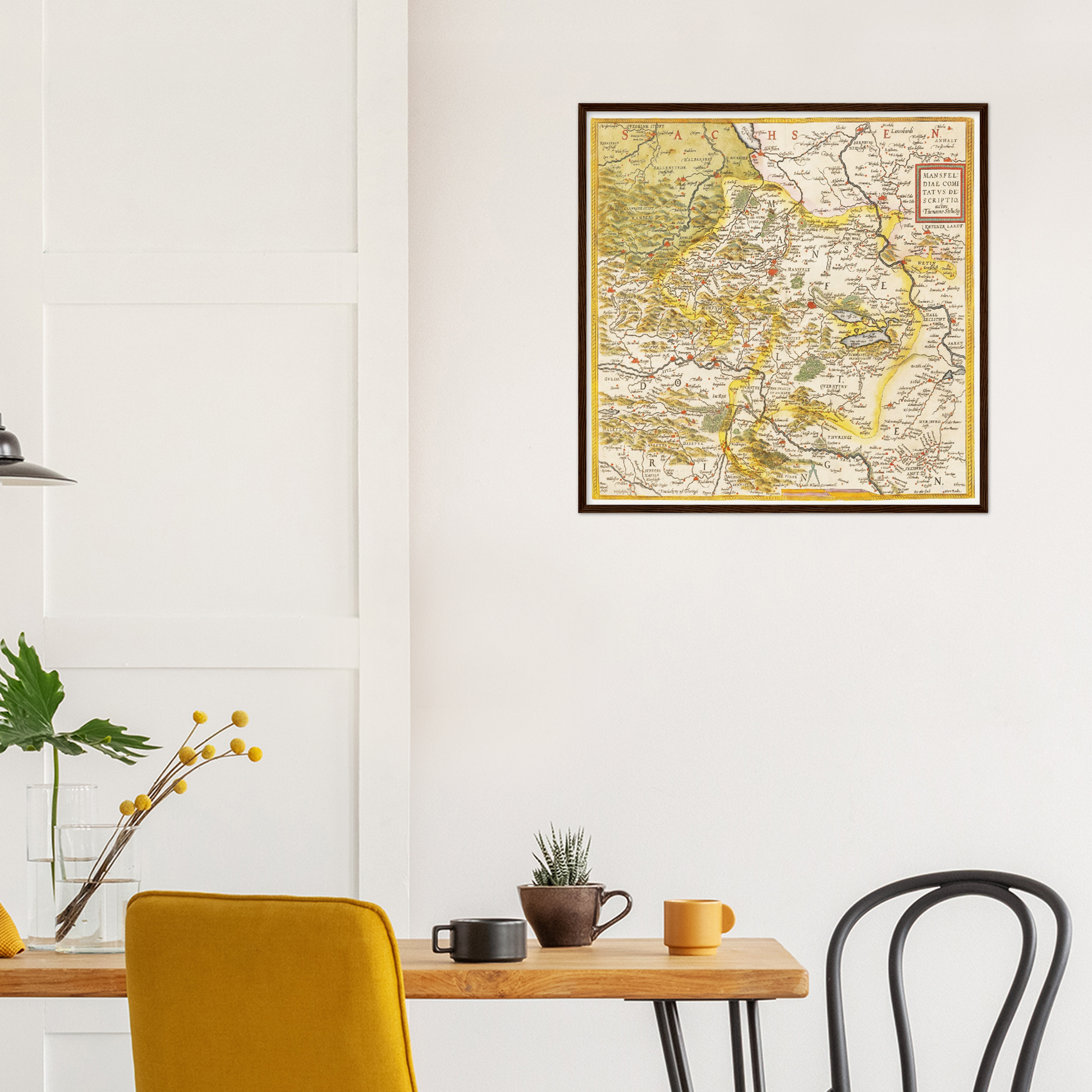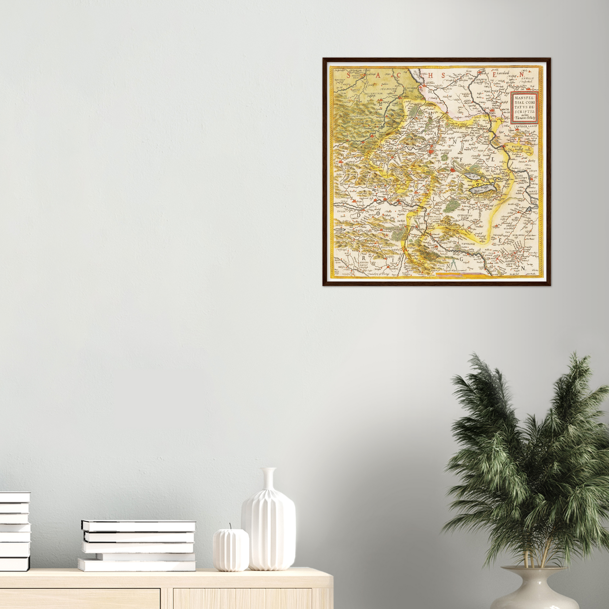 Diese bemerkenswerte Karte des MANSFELD aus dem Jahr 1609 eröffnet einen faszinierenden Blick in die Vergangenheit. In einer Zeit, als das Reisen noch ein Abenteuer war und die Weltkarte Stück für Stück zusammengefügt wurde, erzählt sie von Entdeckungen und der wachsenden Bedeutung der Kartographie. Der zarte Schwung der Linien und die Detailtreue der Gravuren machen aus dieser Karte nicht nur ein Zeugnis geographischer Kenntnisse, sondern ein Kunstwerk, das die Seele berührt. Diese Karte, die einst dazu diente, Reisende durch die sanften Hügel und geschichtsträchtigen Städte von Mansfeld zu führen, bringt heute ein Stück Vergangenheit in Ihre eigenen vier Wände und verwandelt jeden Raum in eine Bühne historischer Erzählungen.