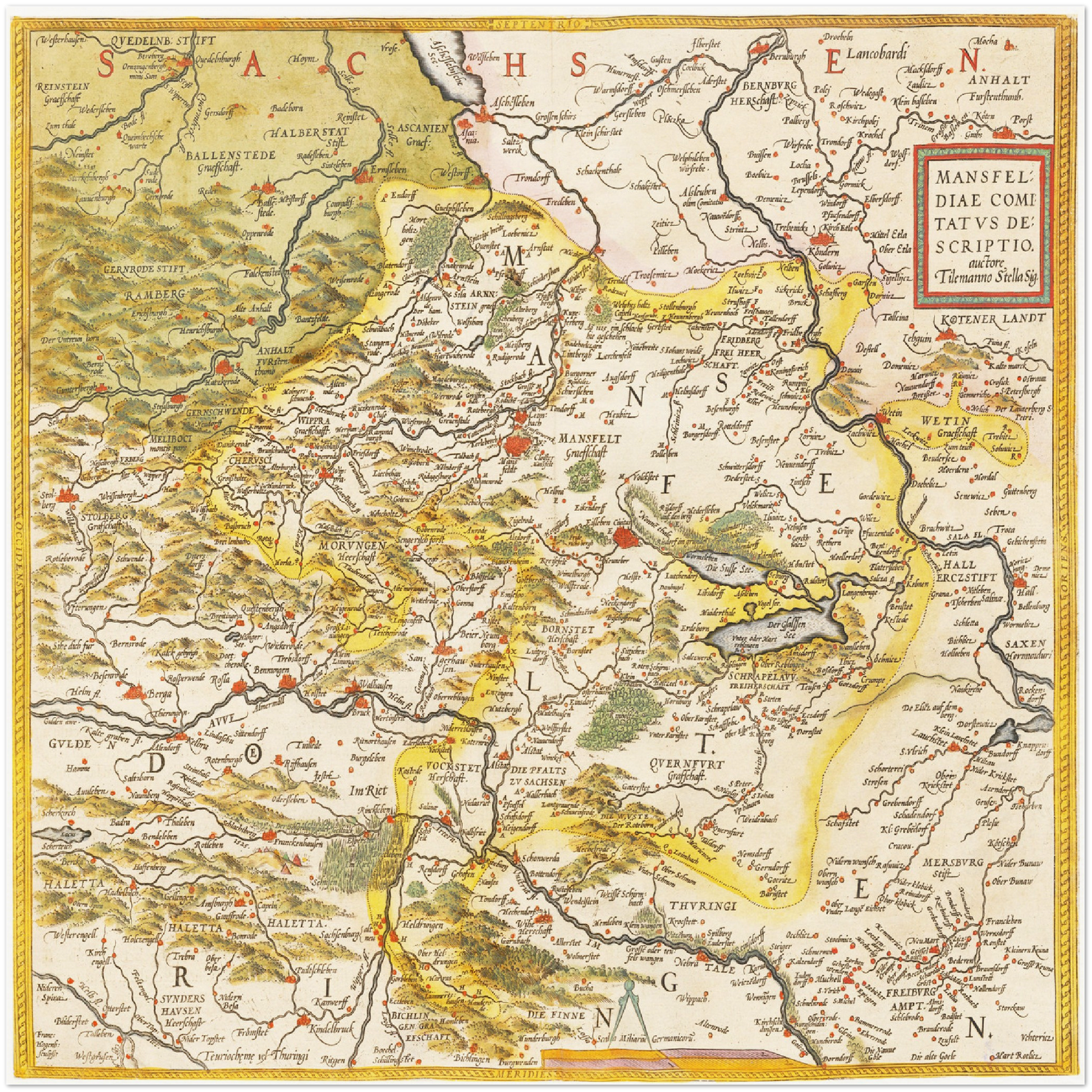Tauchen Sie in die faszinierende Welt des MANSFELD um 1609 ein und lassen Sie sich von der kunstvollen Darstellung dieser historischen Landschaft verzaubern.
