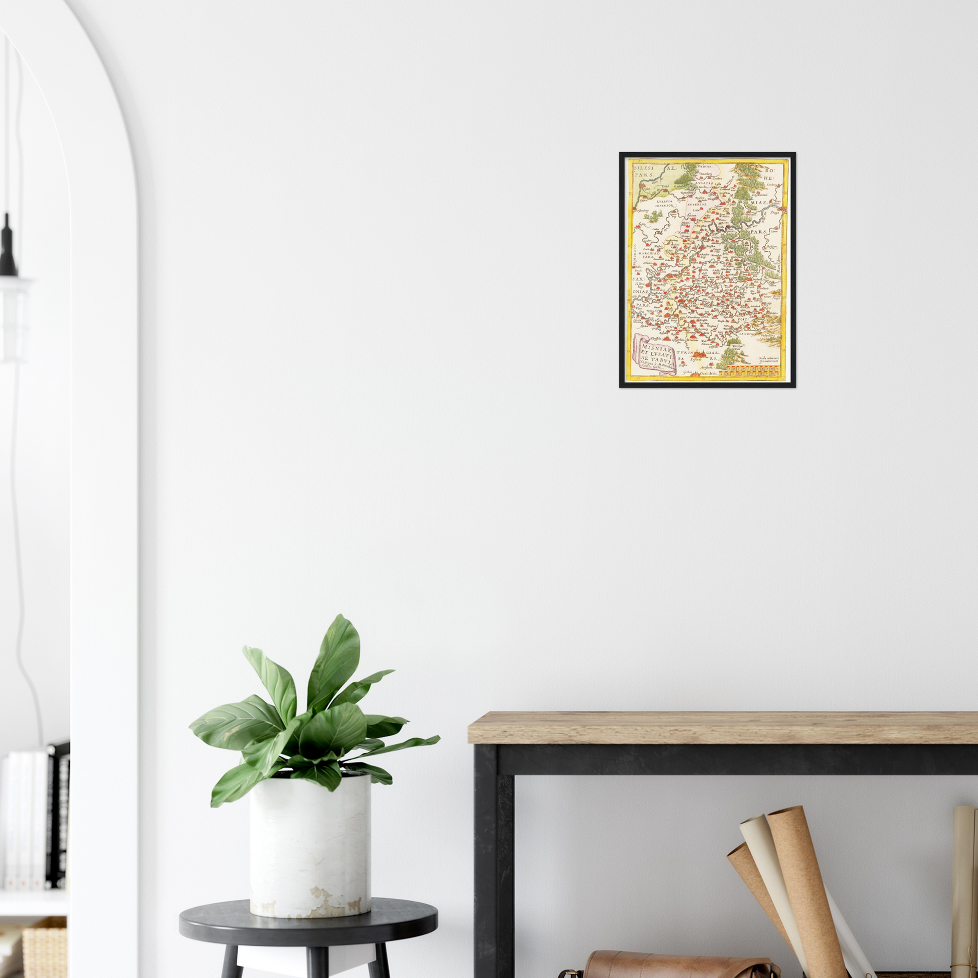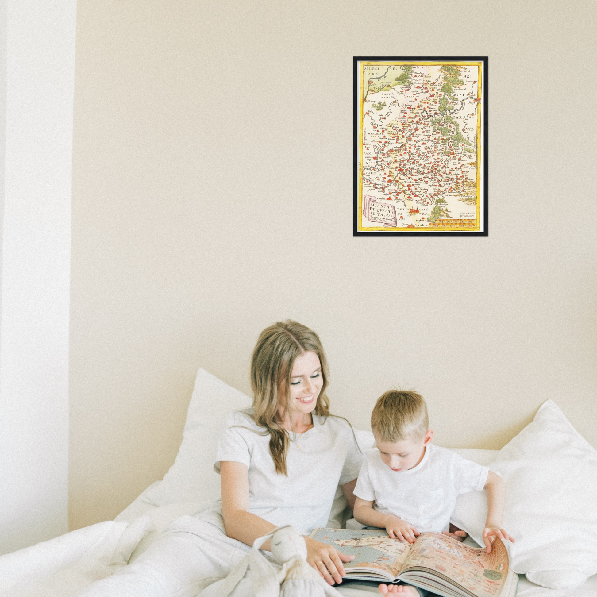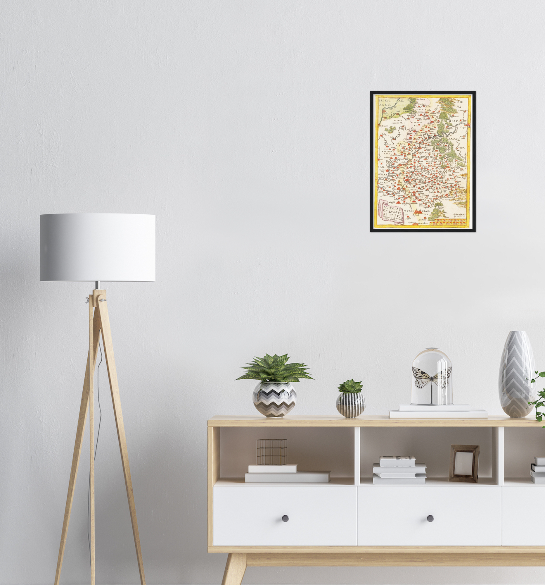 Unsere Nachdrucke entstehen in Archivqualität auf feinstem, mattem Papier (250 g/m²), das jedem Raum eine eindrucksvolle Note verleiht. Die hochauflösende Digitalisierung und farbgetreue Rekonstruktion garantieren, dass du ein Stück Geschichte in unvergleichlicher Schärfe und Brillanz erlebst. Jeder Druck wird auf Bestellung in Deutschland gefertigt und ist in 3 erlesenen Größen erhältlich: 30x40 - 45x60 cm. Zum Schutz wird jede Karte in einer stabilen Verpackung versandt. Optional kannst du zwischen natürlichen, dunkelbraunen oder schwarzen Holzrahmen sowie einem eleganten schwarzen Metallrahmen wählen, der mit bruchsicherem Plexiglas ausgestattet ist.