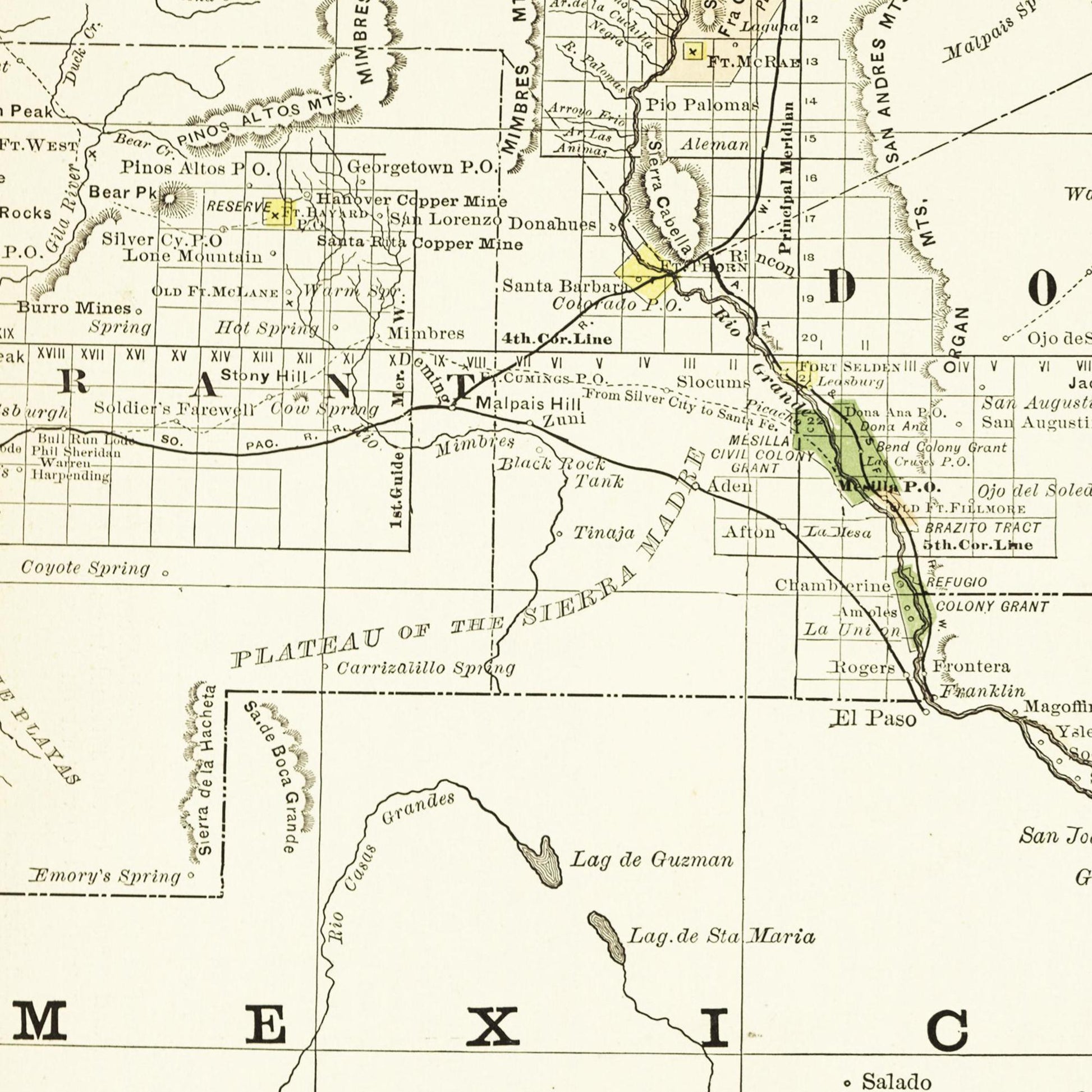 Historische Landkarte New Mexico um 1882