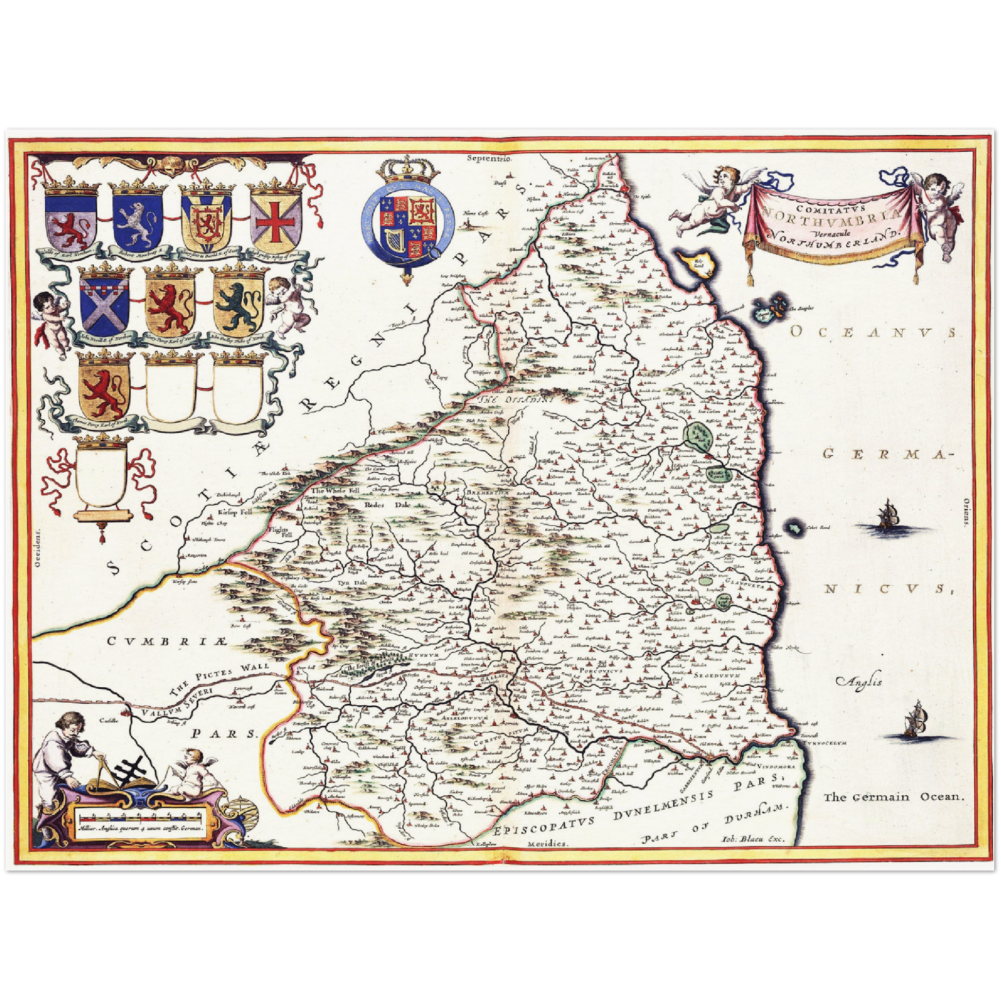 Entdecke die historische Schönheit von Northumberland mit dieser Landkarte von 1646 als hochwertigem Nachdruck.