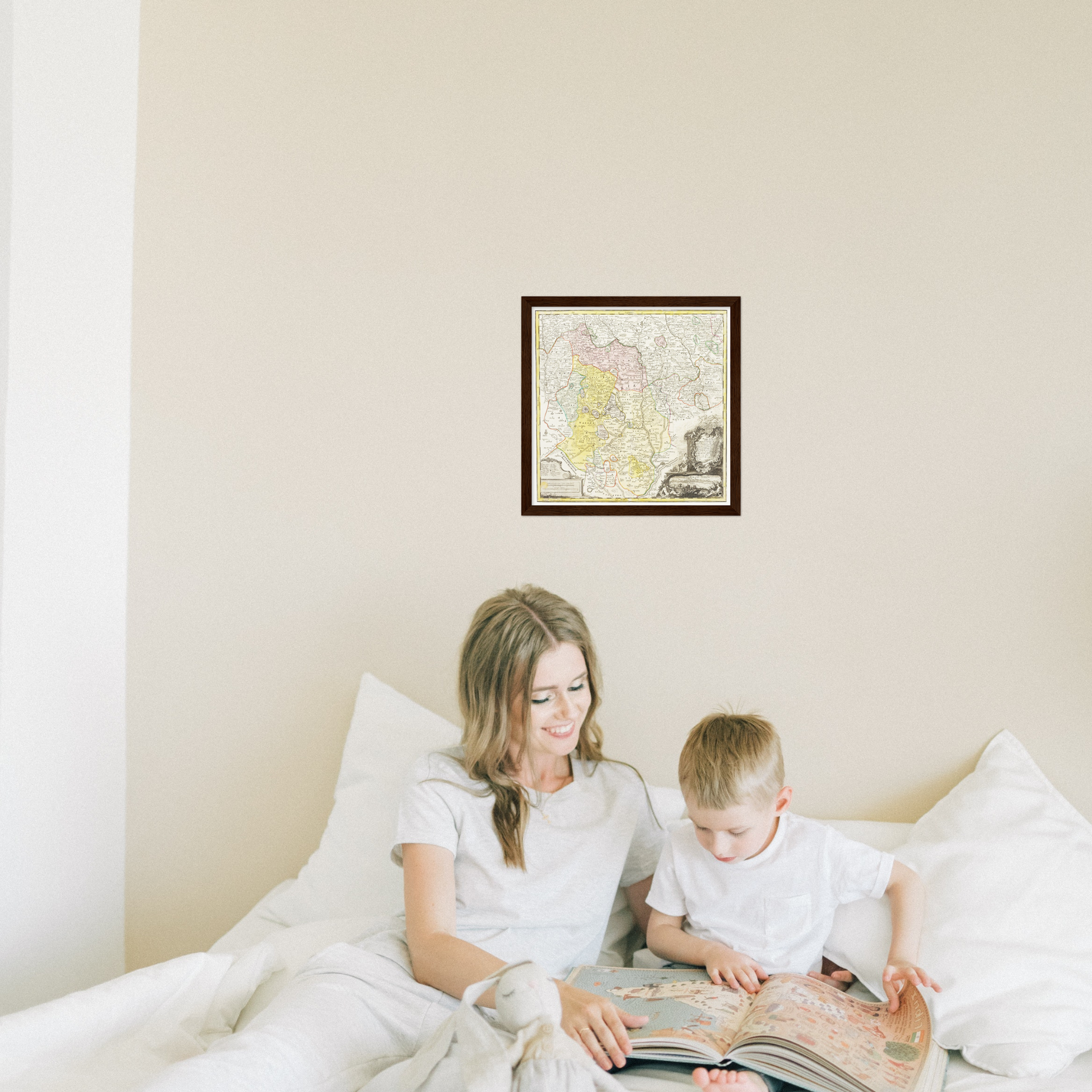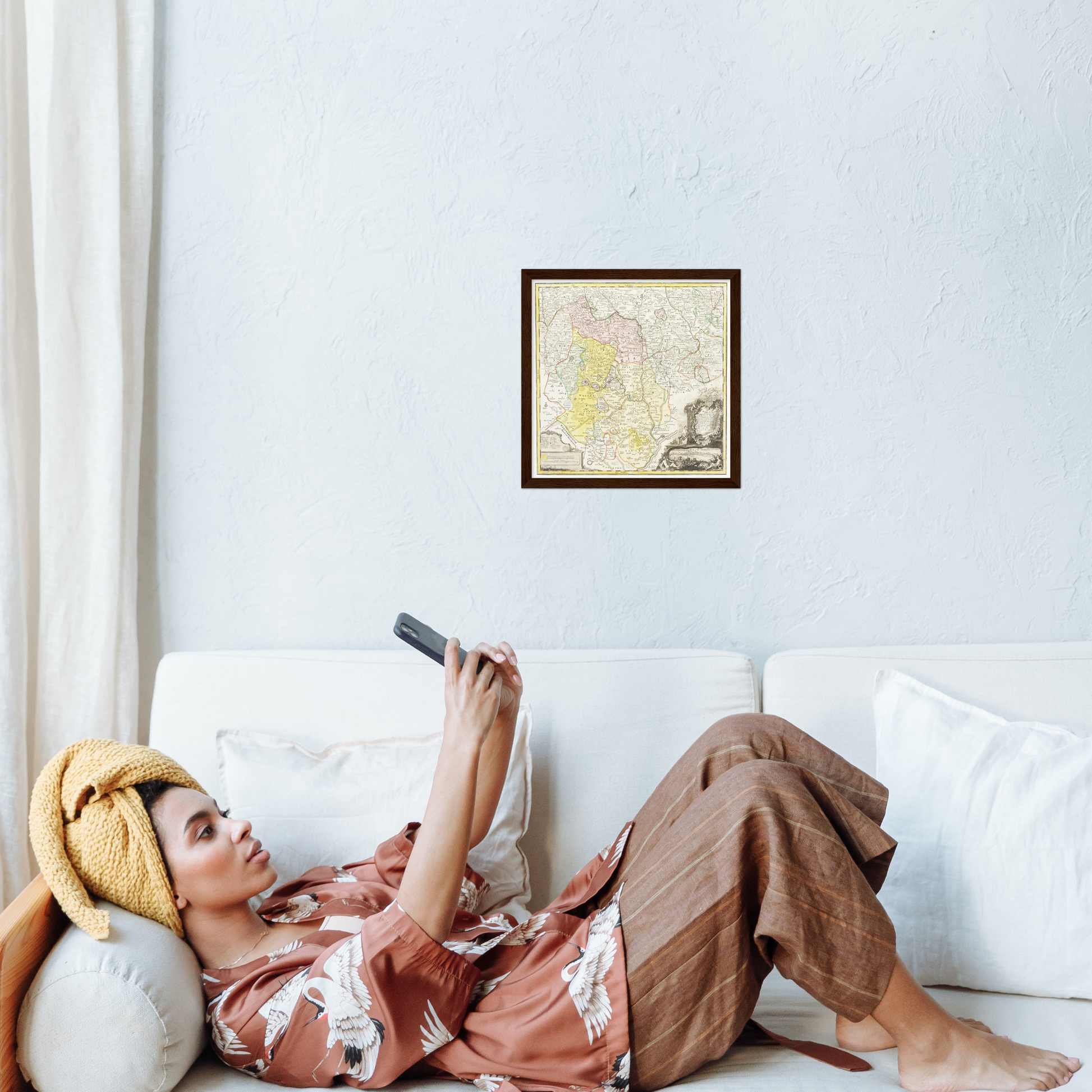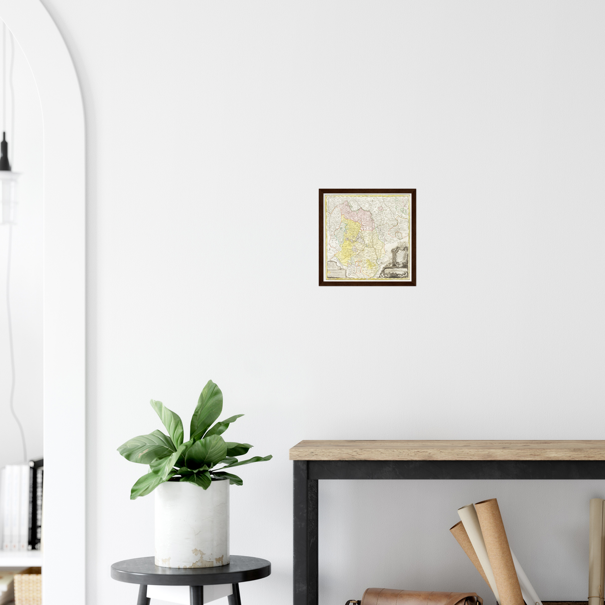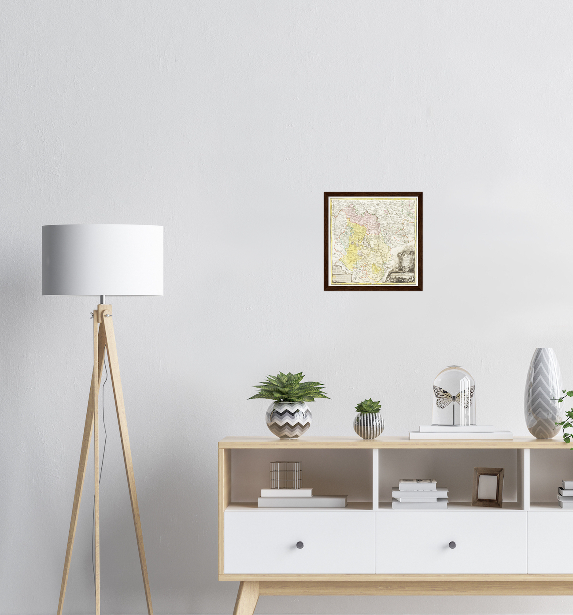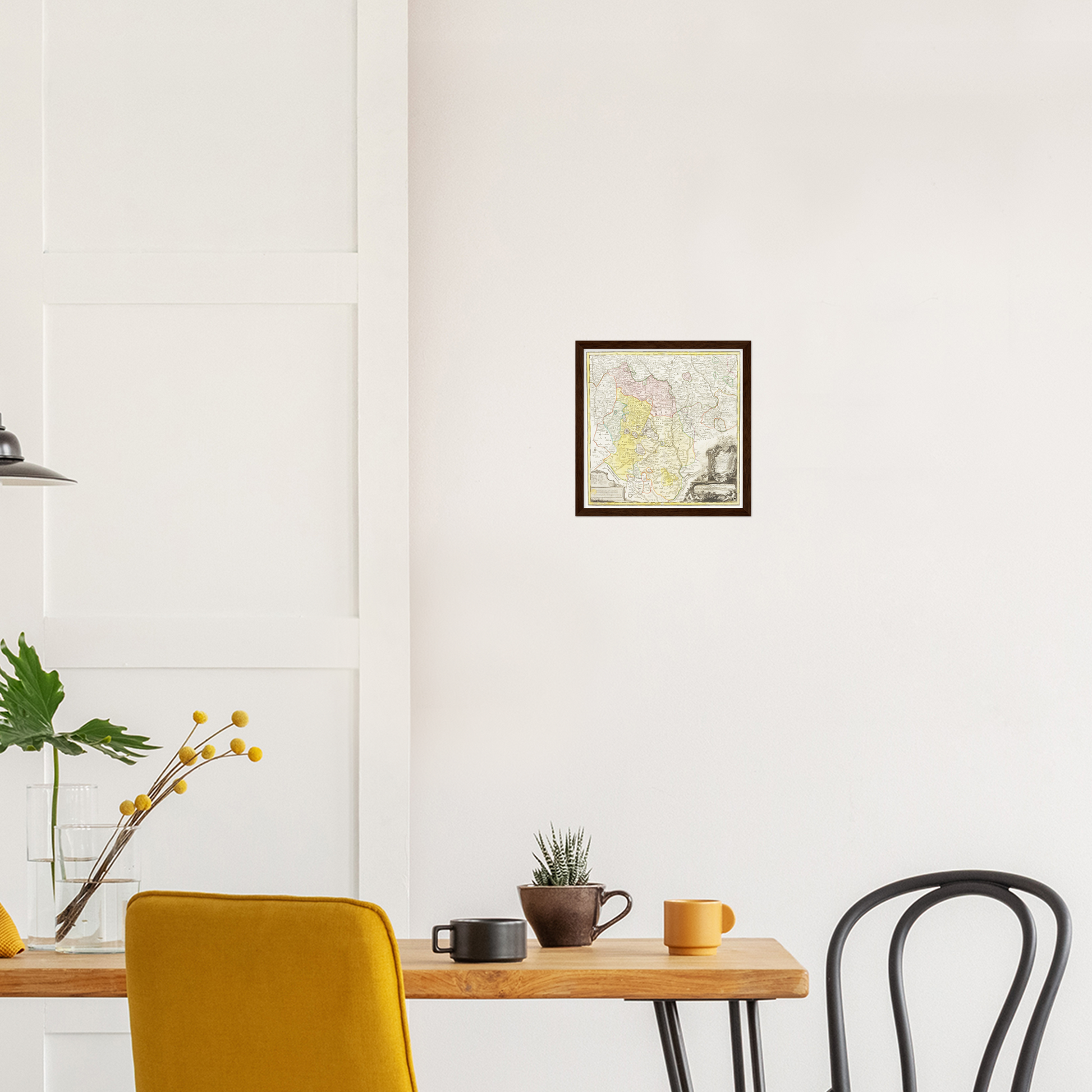 Unsere Nachdrucke entstehen in Archivqualität auf feinstem, mattem Papier (250 g/m²), das jedem Raum eine eindrucksvolle Note verleiht. Die hochauflösende Digitalisierung und farbgetreue Rekonstruktion garantieren, dass du ein Stück Geschichte in unvergleichlicher Schärfe und Brillanz erlebst. Jeder Druck wird auf Bestellung in Deutschland gefertigt und ist in 3 erlesenen Größen erhältlich: 30x30 cm. Zum Schutz wird jede Karte in einer stabilen Verpackung versandt. Optional kannst du zwischen natürlichen, dunkelbraunen oder schwarzen Holzrahmen sowie einem eleganten schwarzen Metallrahmen wählen, der mit bruchsicherem Plexiglas ausgestattet ist.
