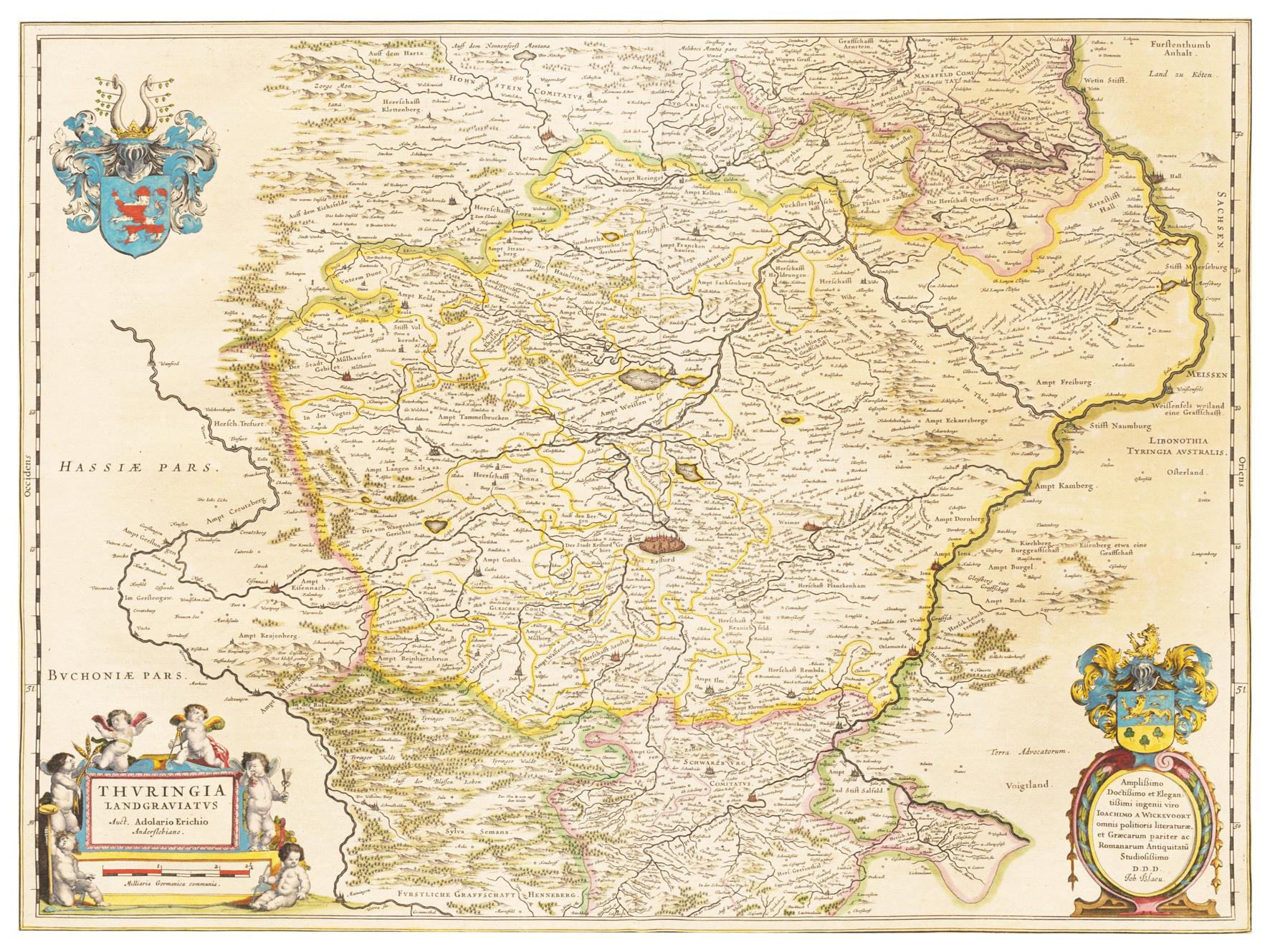 Tauchen Sie ein in die Vergangenheit Thüringens mit der historischen Landkarte von 1635, die Ihr Zuhause zu einem Ort der Entdeckung macht.