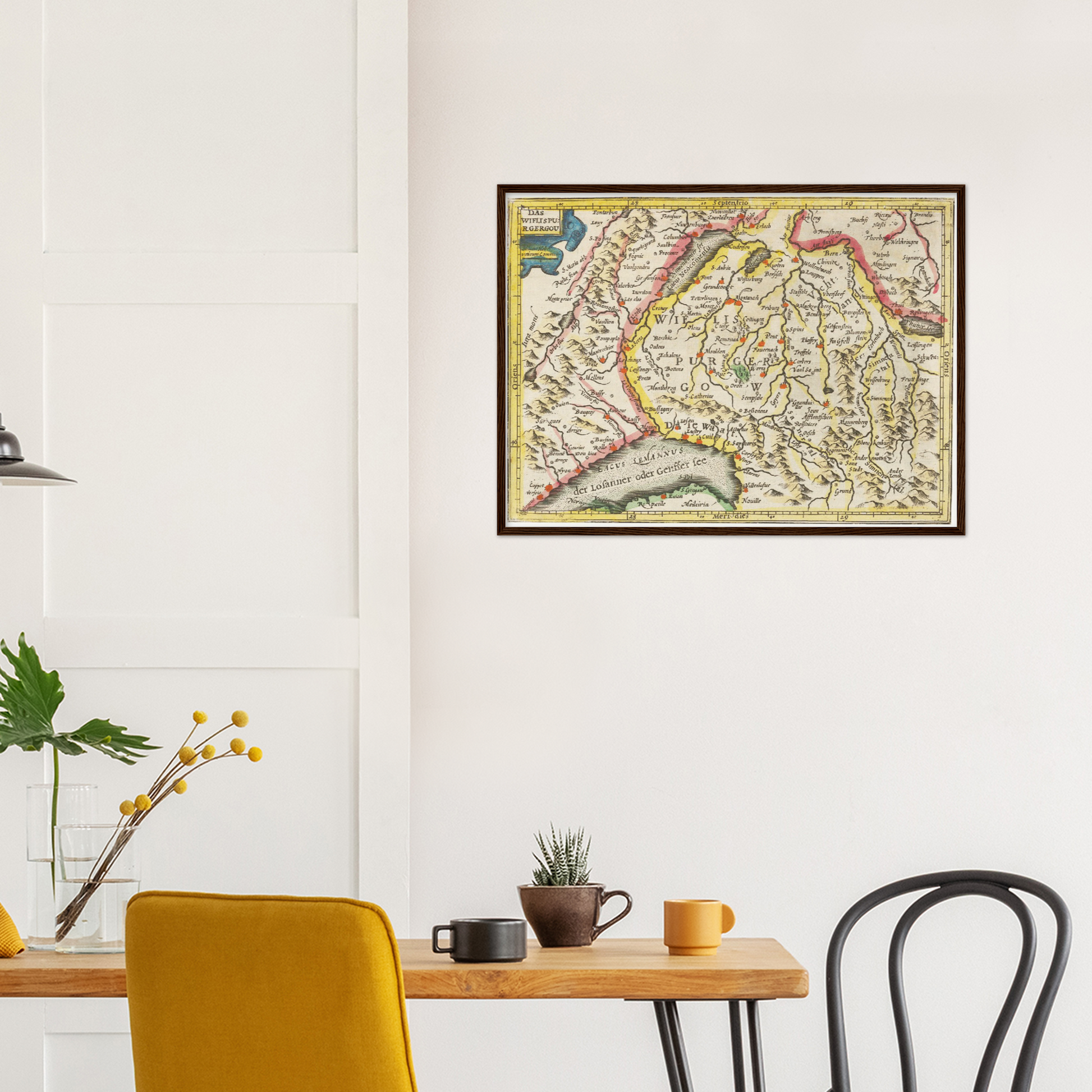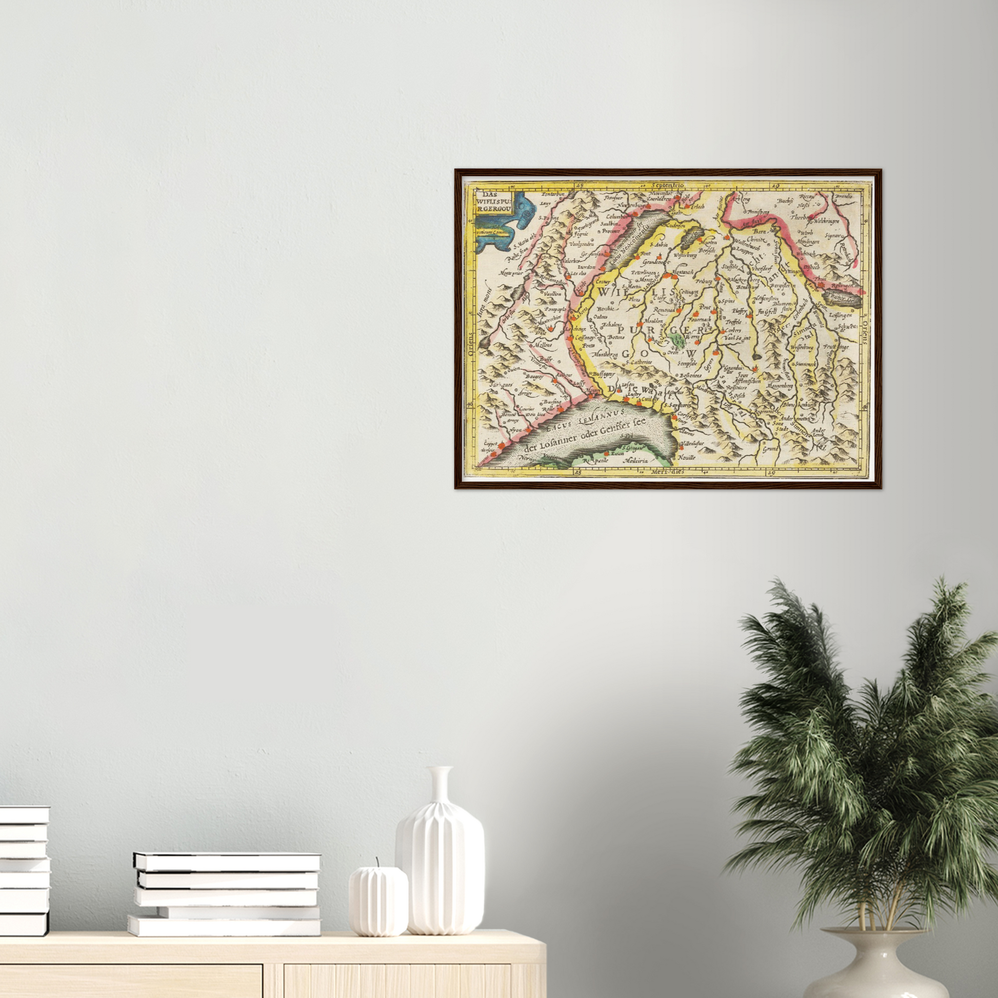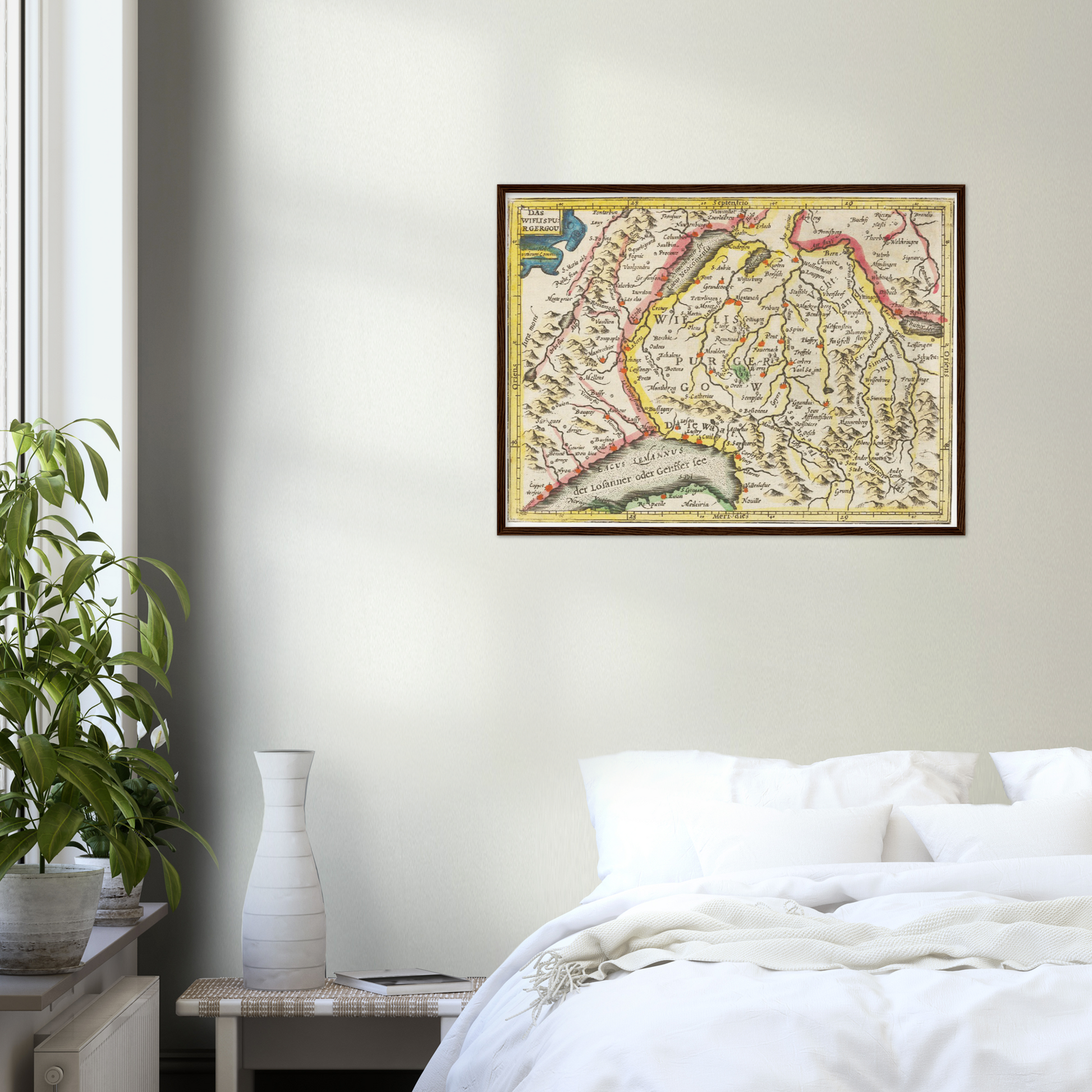 Unsere Nachdrucke entstehen in Archivqualität auf feinstem, mattem Papier (250 g/m²), das jedem Raum eine eindrucksvolle Note verleiht. Die hochauflösende Digitalisierung und farbgetreue Rekonstruktion garantieren, dass du ein Stück Geschichte in unvergleichlicher Schärfe und Brillanz erlebst. Jeder Druck wird auf Bestellung in Deutschland gefertigt und ist in 3 erlesenen Größen erhältlich: 40x30 - 80x60 cm. Zum Schutz wird jede Karte in einer stabilen Verpackung versandt. Optional kannst du zwischen natürlichen, dunkelbraunen oder schwarzen Holzrahmen sowie einem eleganten schwarzen Metallrahmen wählen, der mit bruchsicherem Plexiglas ausgestattet ist.