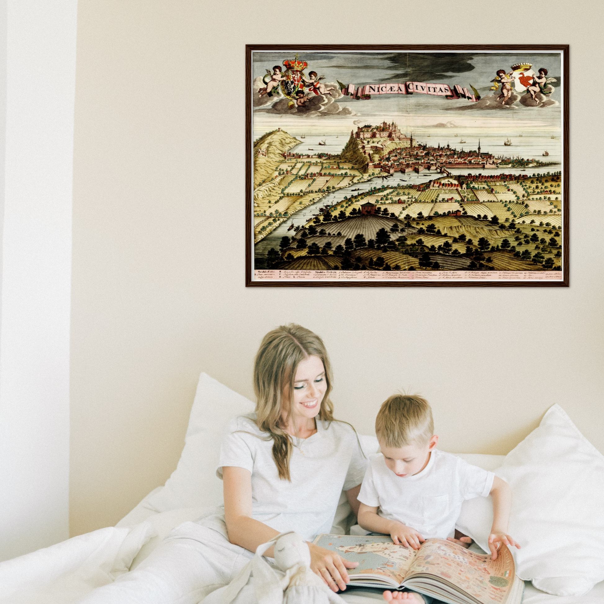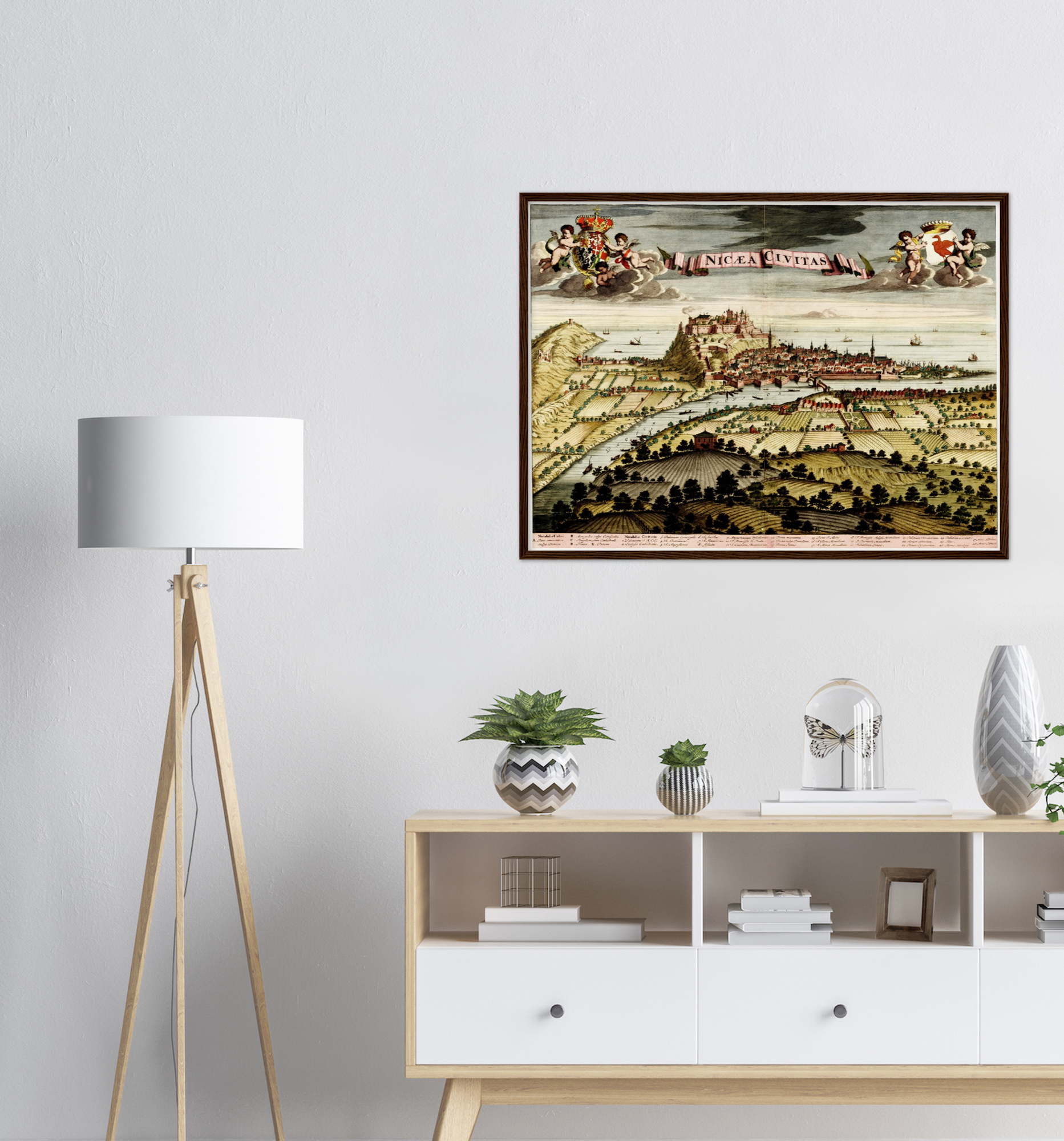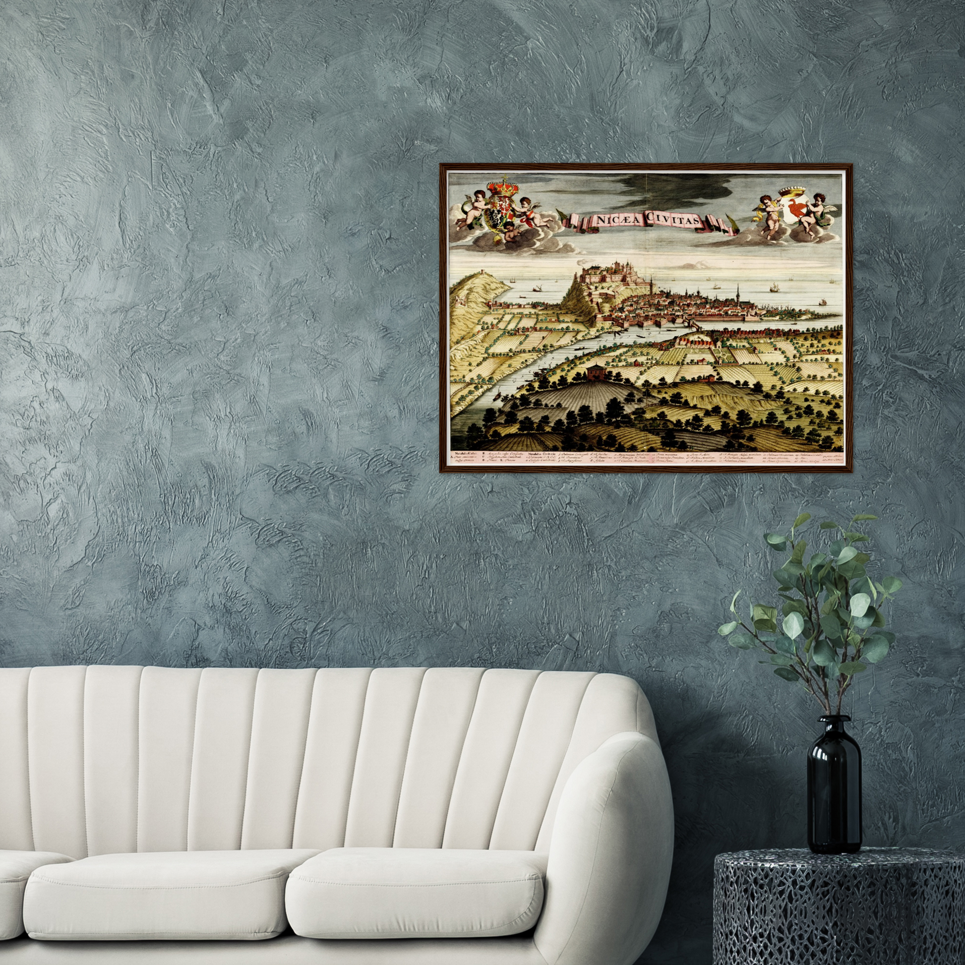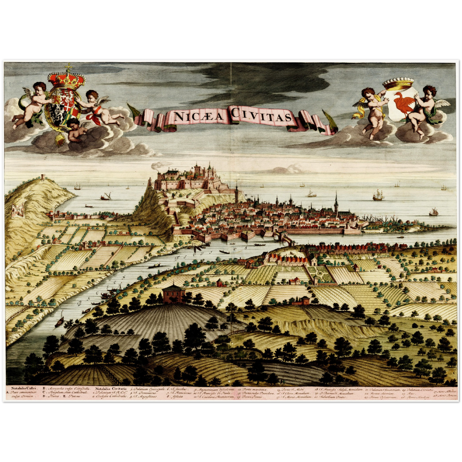 Es handelt sich um einen Nachdruck der Stadtansicht von Nizza um 1700.