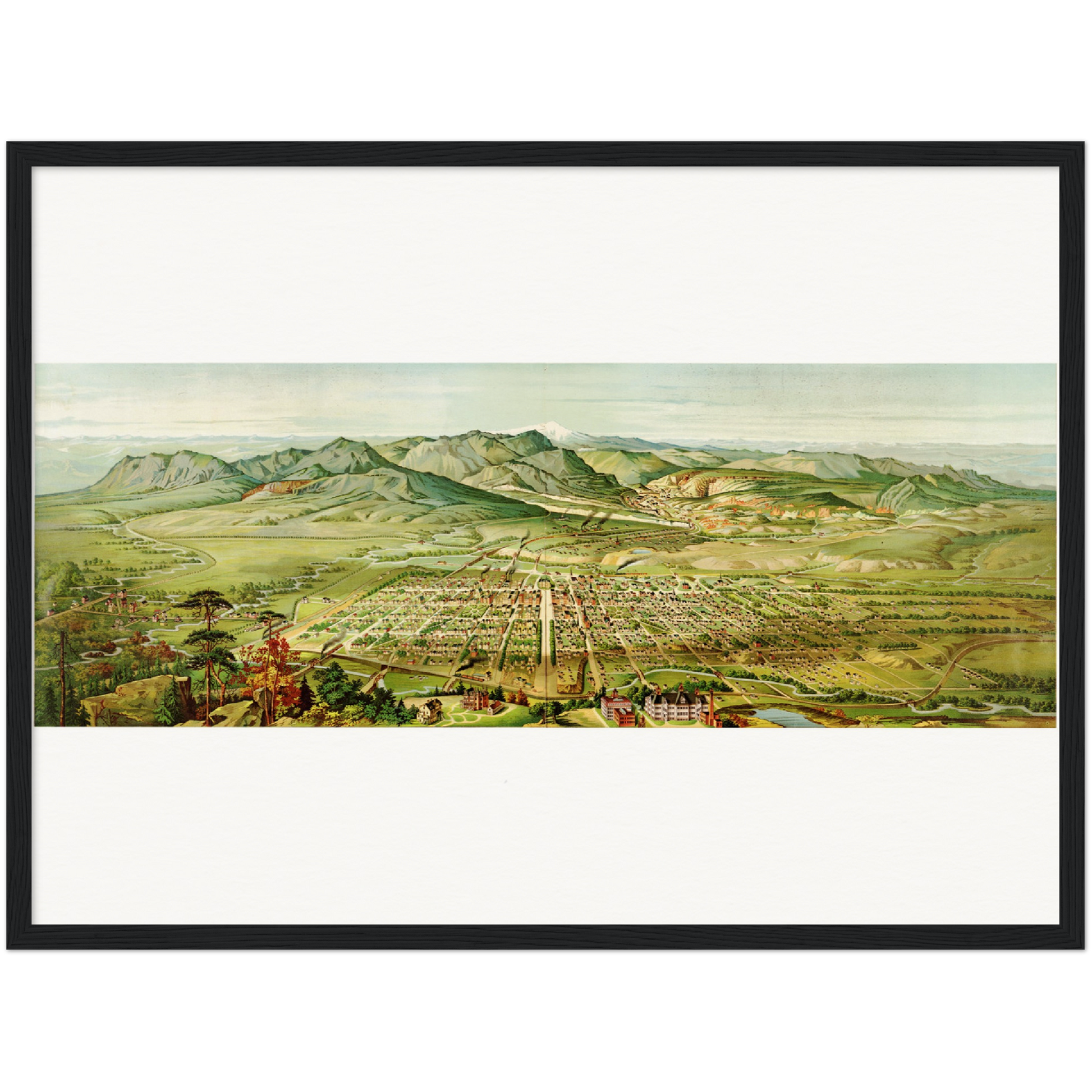 Erlebe die Eindrücke des ausgehenden 19. Jahrhunderts mit dieser eindrucksvollen Stadtansicht von Colorado Springs, 1890, die Geschichte und Kunst in sich vereint.