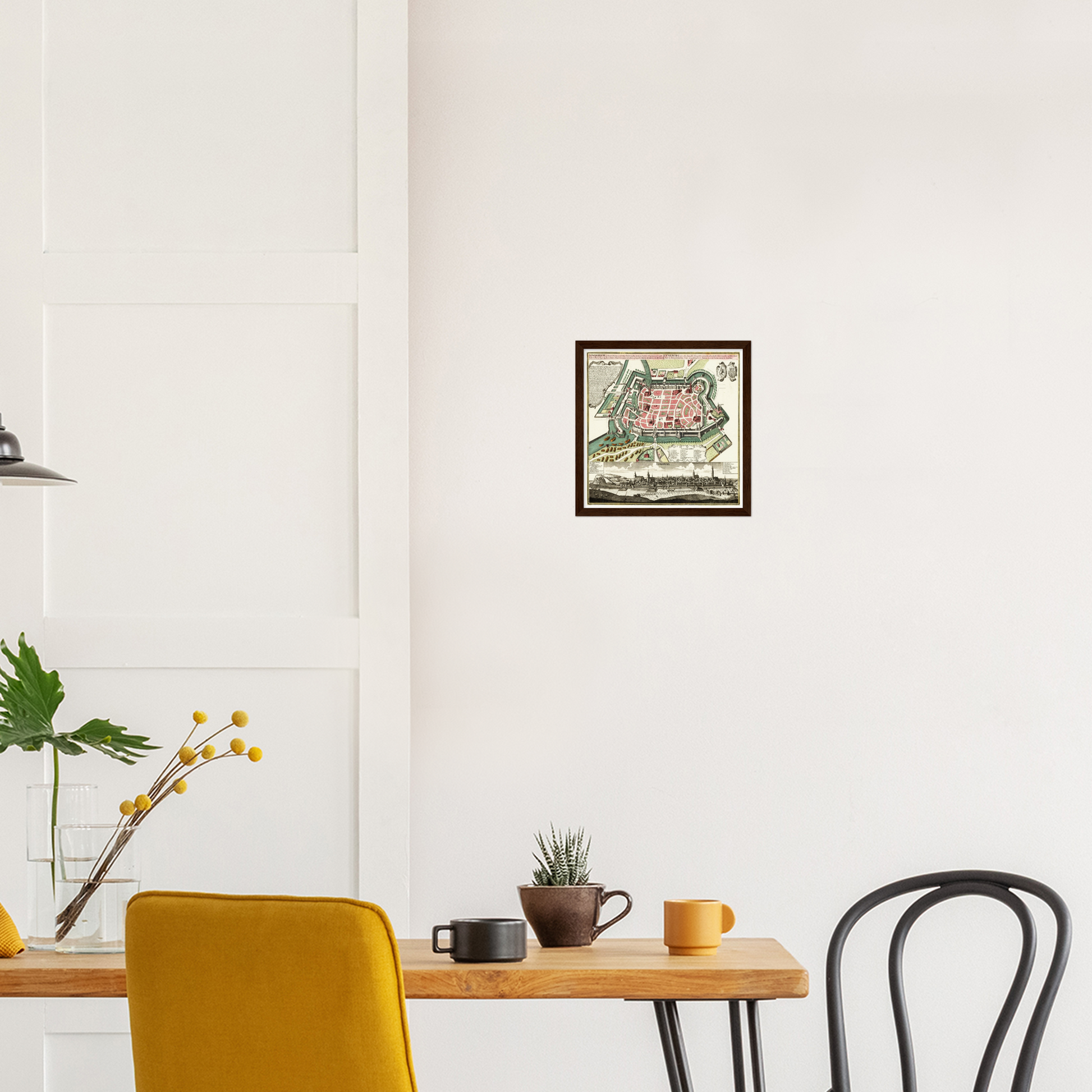 Unsere Nachdrucke entstehen in Archivqualität auf feinstem, mattem Papier (250 g/m²), das jedem Raum eine eindrucksvolle Note verleiht. Die hochauflösende Digitalisierung und farbgetreue Rekonstruktion garantieren, dass du ein Stück Geschichte in unvergleichlicher Schärfe und Brillanz erlebst. Jeder Druck wird auf Bestellung in Deutschland gefertigt und ist in 3 erlesenen Größen erhältlich: 30x30 cm. Zum Schutz wird jede Karte in einer stabilen Verpackung versandt. Optional kannst du zwischen natürlichen, dunkelbraunen oder schwarzen Holzrahmen sowie einem eleganten schwarzen Metallrahmen wählen, der mit bruchsicherem Plexiglas ausgestattet ist.