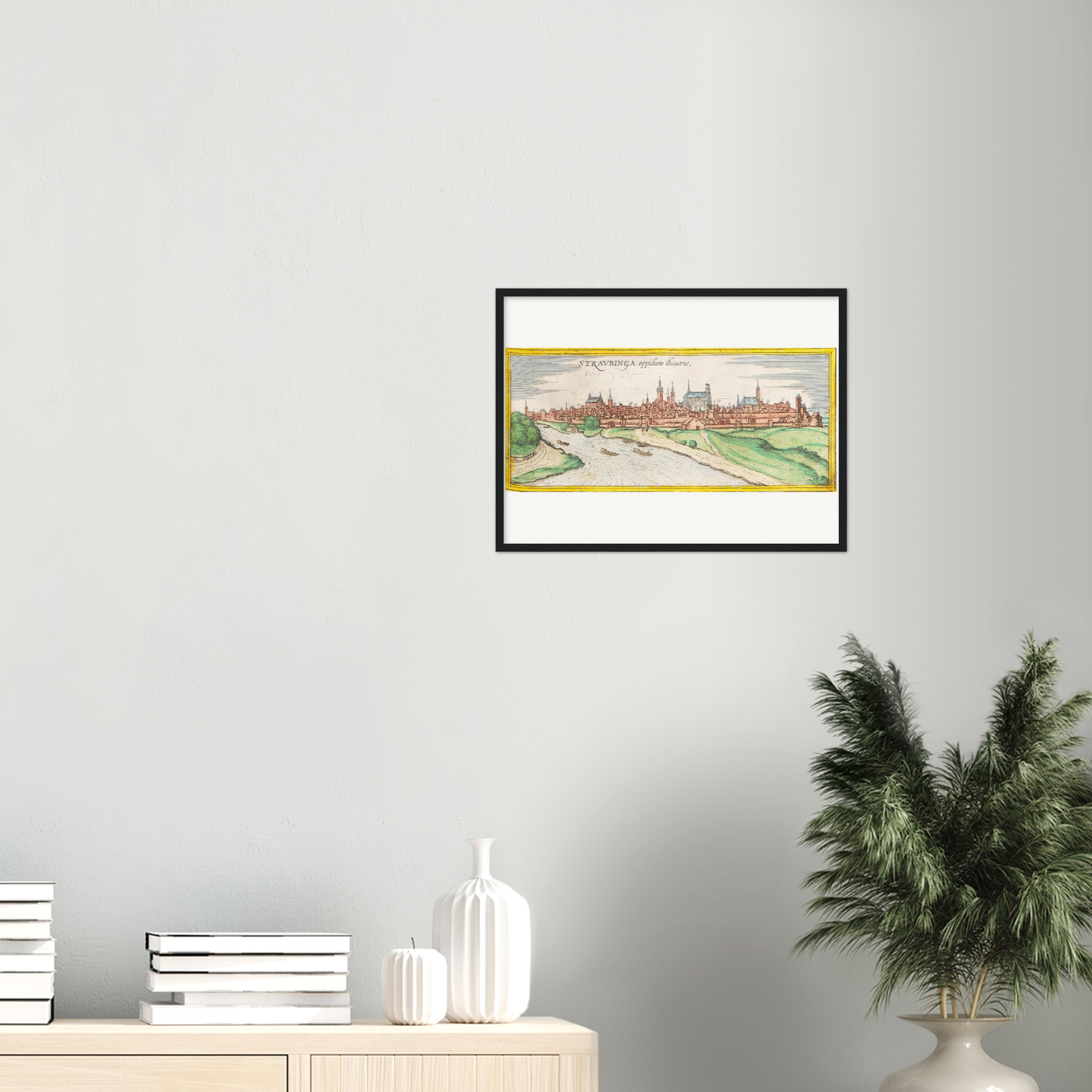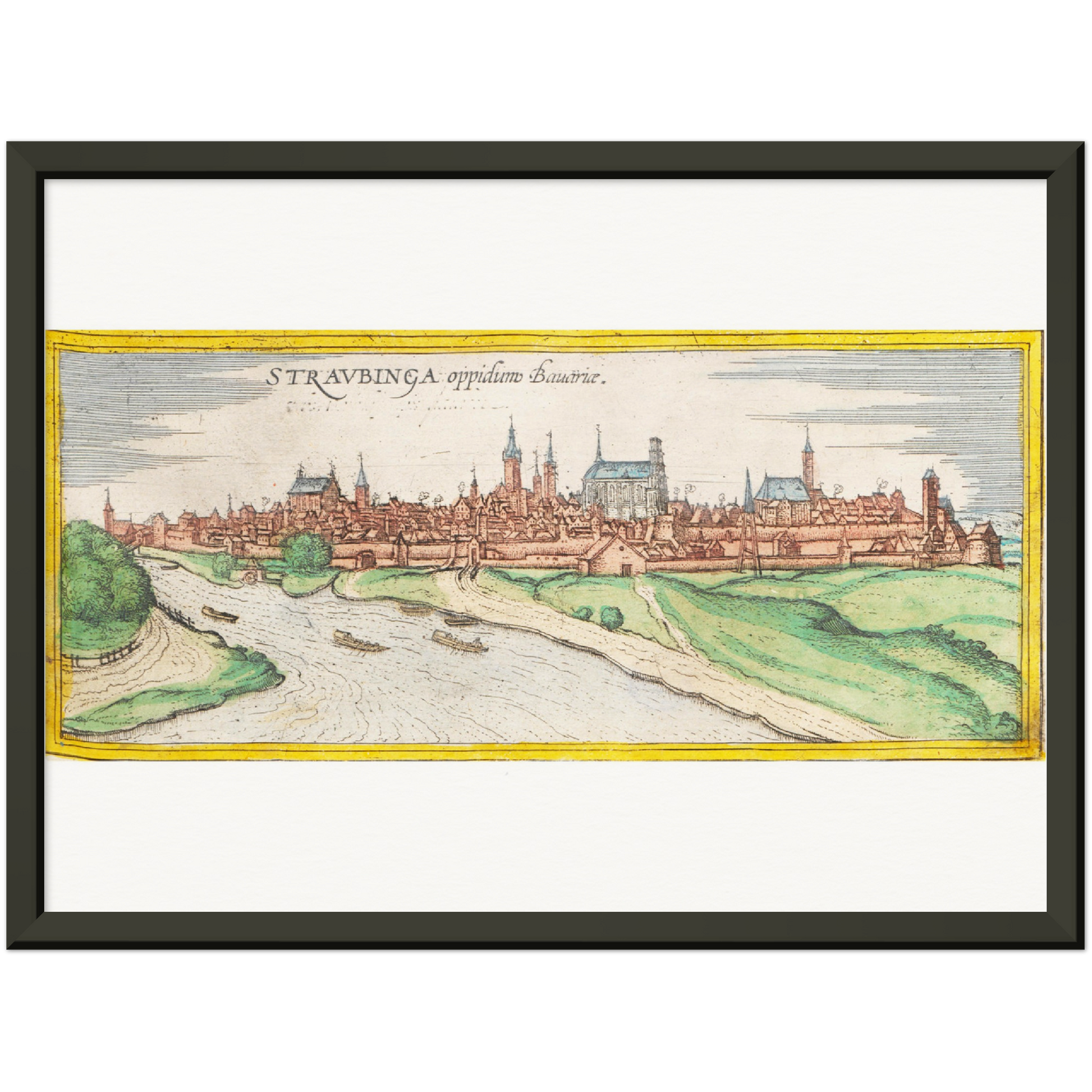 Es handelt sich um einen Nachdruck der Stadtansicht von Straubing um 1570.