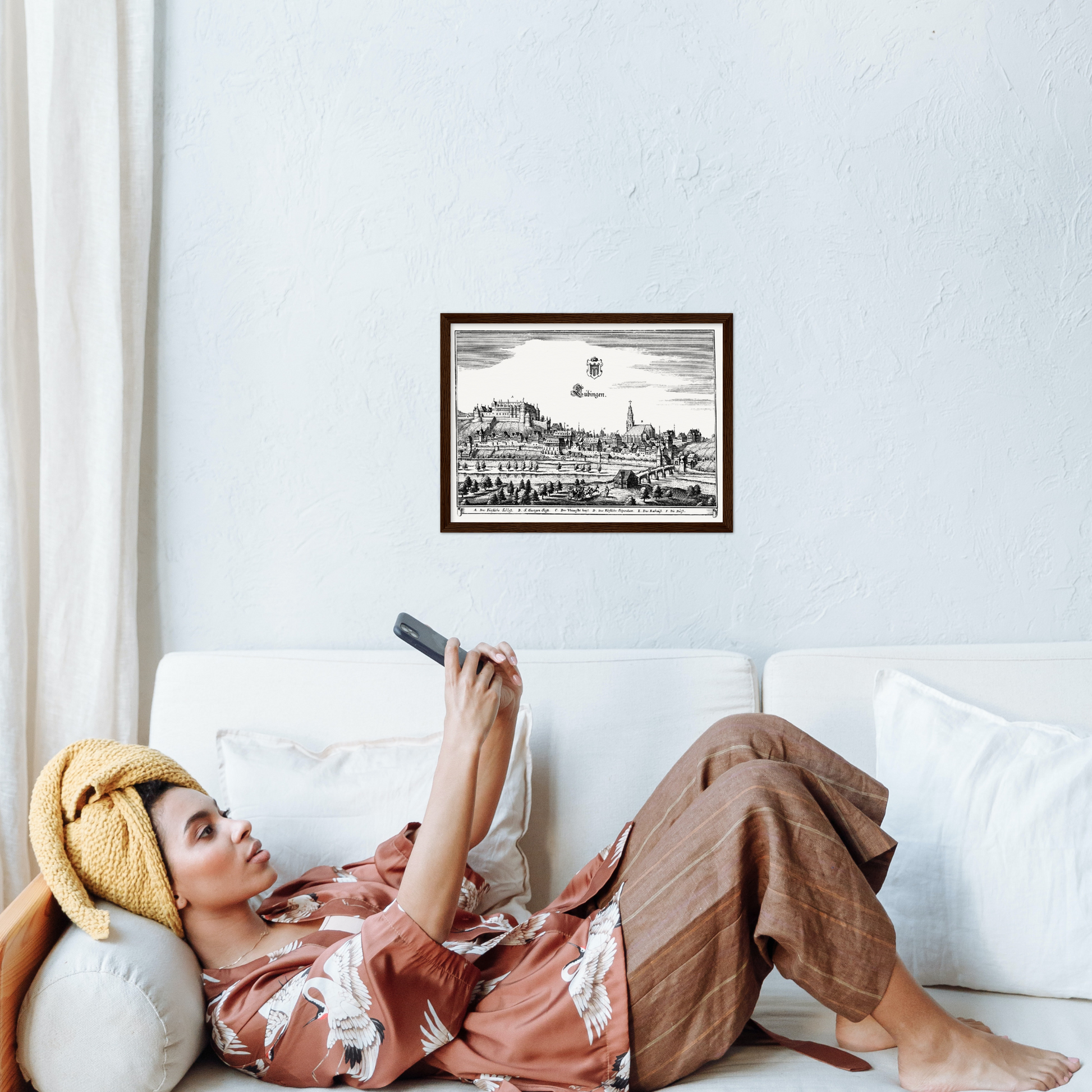 Entdecke die zauberhafte Stadtansicht von Tübingen aus dem Jahr 1643 und verleihe Deinen Räumen eine historische Note, die zu Geschichten inspiriert.
