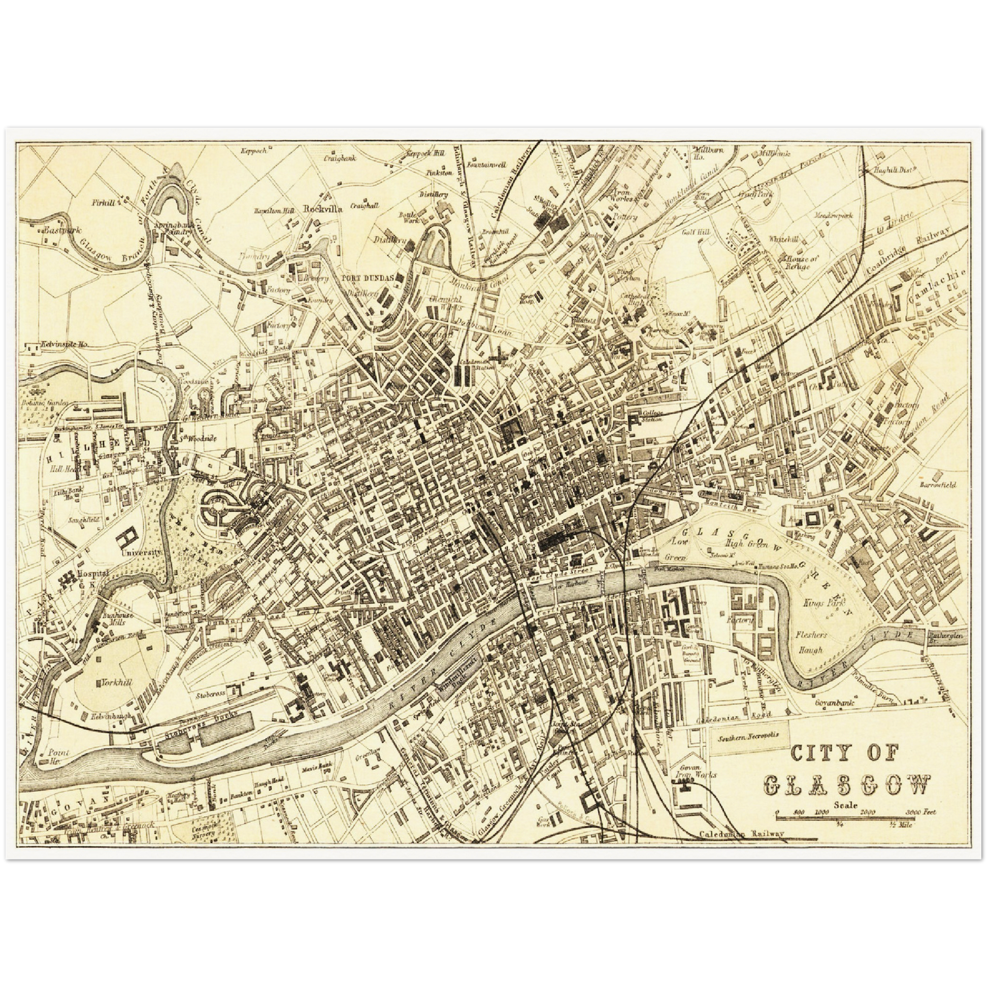 Tauchen Sie ein in das lebendige Treiben des 19. Jahrhunderts mit unserem Historischen Stadtplan von Glasgow um 1878, ein exquisiter Blick in die Vergangenheit dieser pulsierenden Stadt.