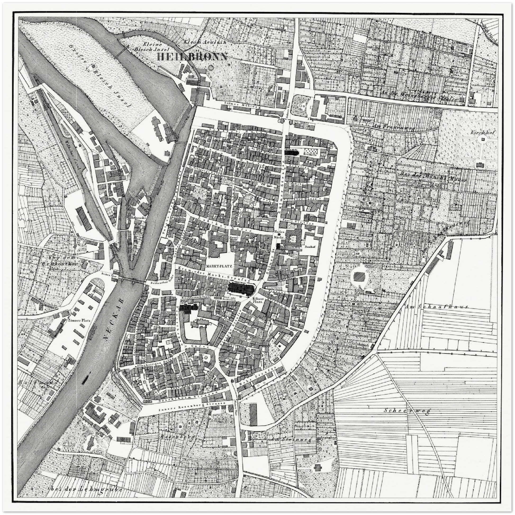 Es handelt sich um einen Nachdruck der Stadtplan von Heilbronn um 1834.