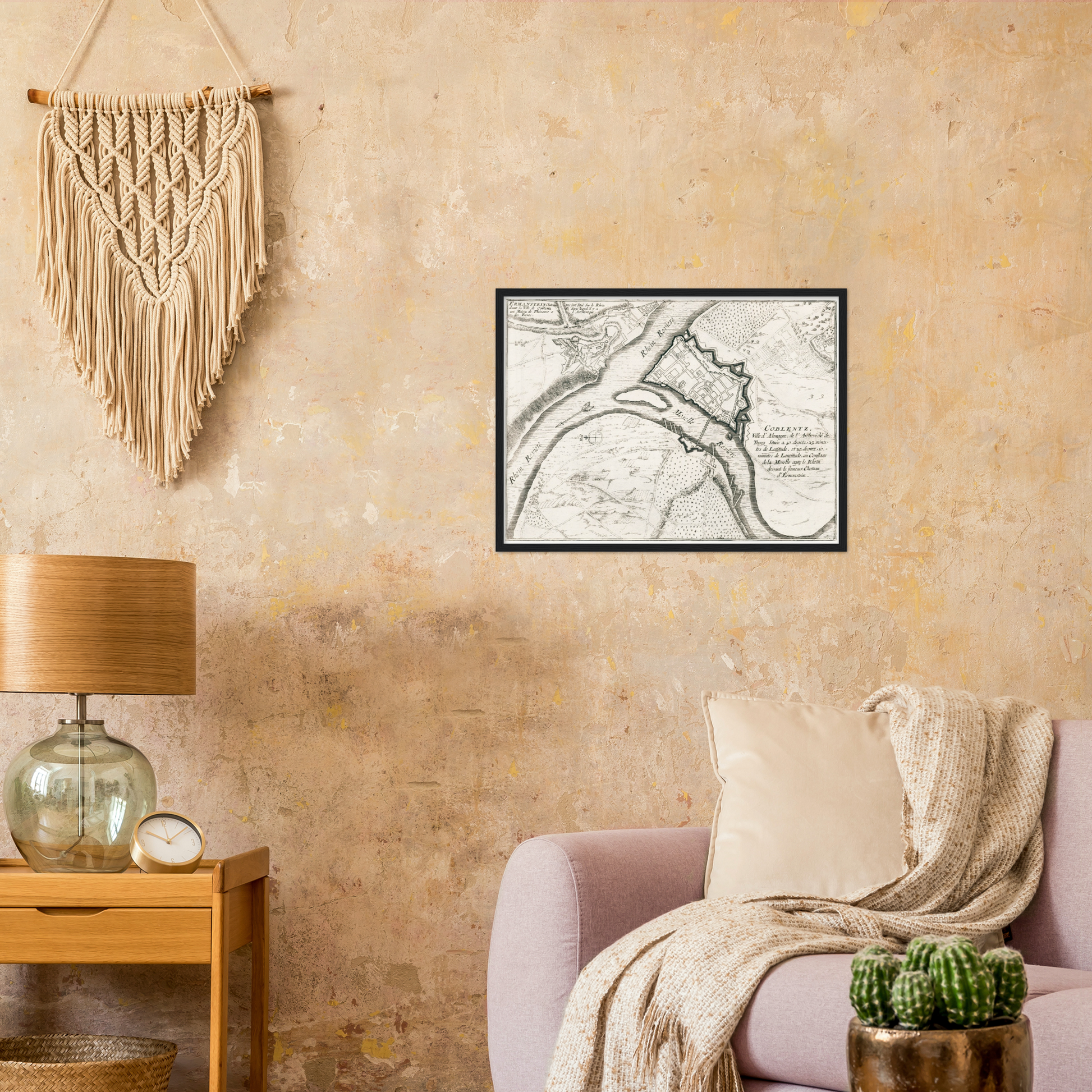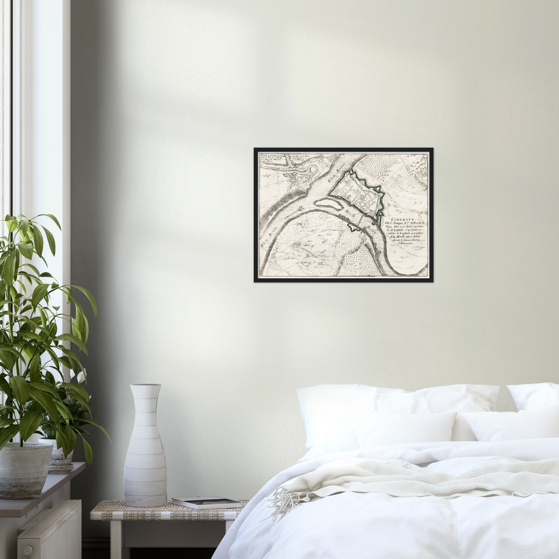 Unsere Nachdrucke entstehen in Archivqualität auf feinstem, mattem Papier (250 g/m²), das jedem Raum eine eindrucksvolle Note verleiht. Die hochauflösende Digitalisierung und farbgetreue Rekonstruktion garantieren, dass du ein Stück Geschichte in unvergleichlicher Schärfe und Brillanz erlebst. Jeder Druck wird auf Bestellung in Deutschland gefertigt und ist in 3 erlesenen Größen erhältlich: 40x30 - 60x45 cm. Zum Schutz wird jede Karte in einer stabilen Verpackung versandt. Optional kannst du zwischen natürlichen, dunkelbraunen oder schwarzen Holzrahmen sowie einem eleganten schwarzen Metallrahmen wählen, der mit bruchsicherem Plexiglas ausgestattet ist.