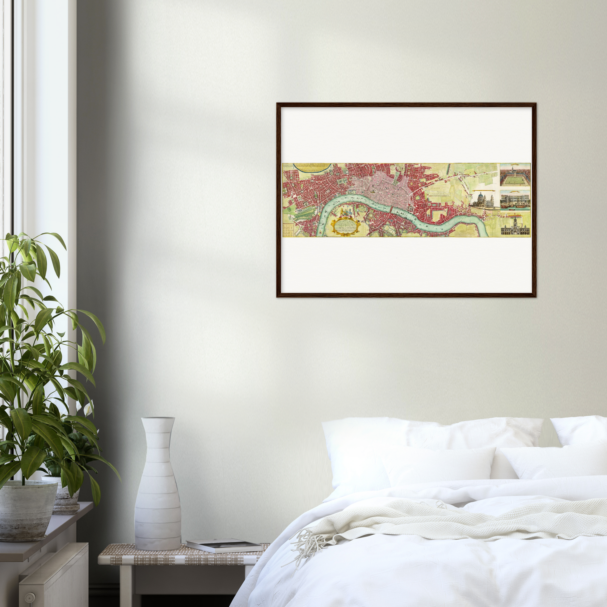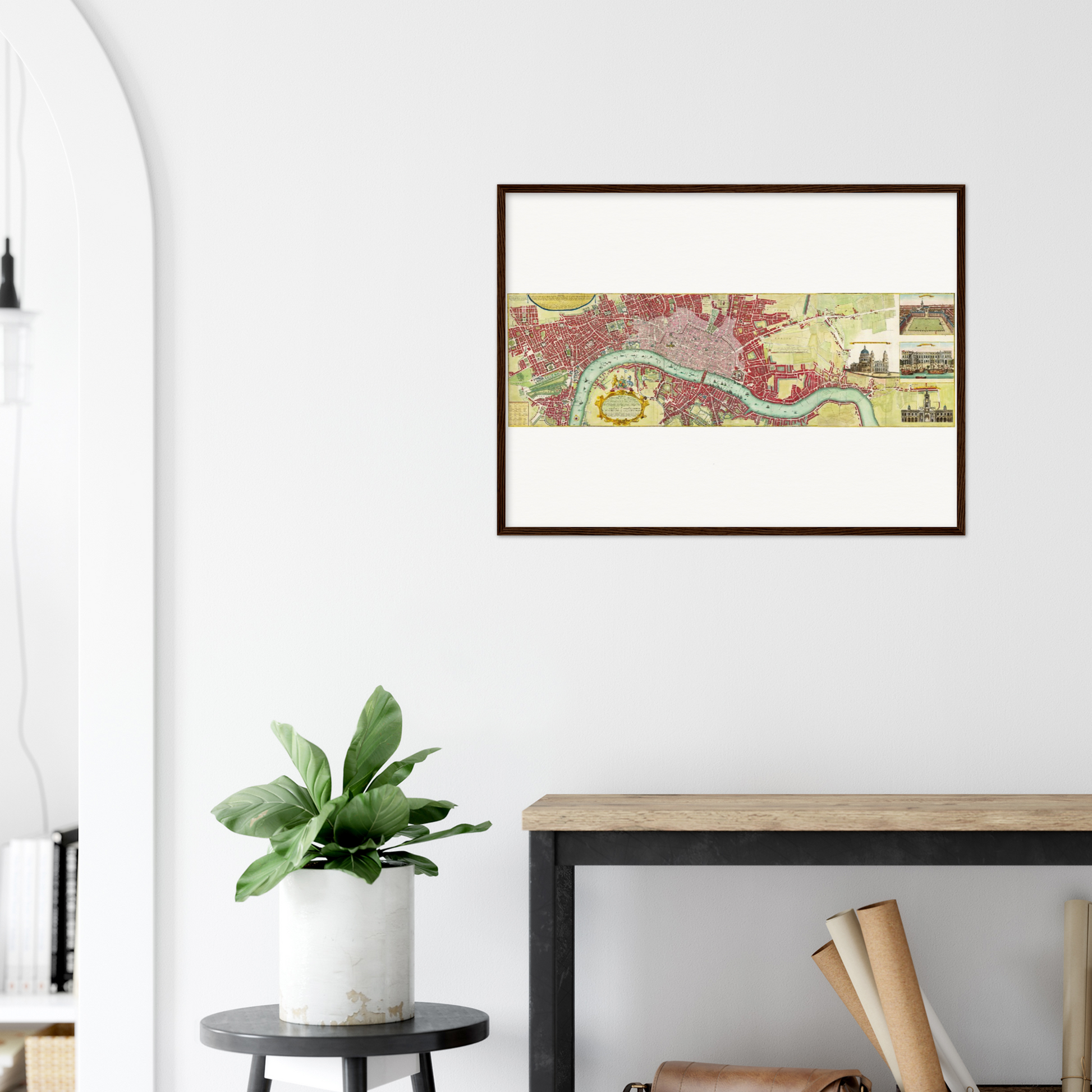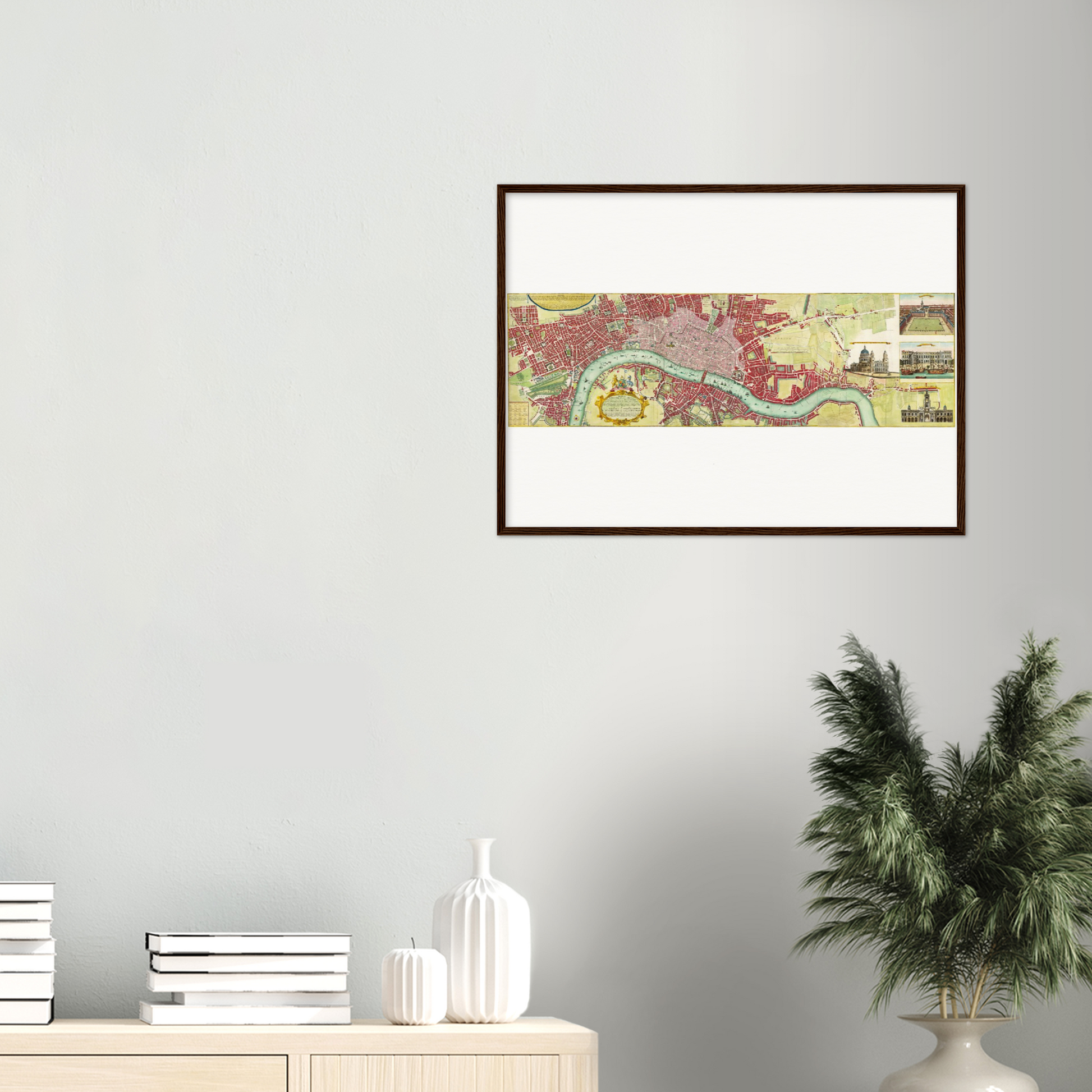 Der Stadtplan von London, erstellt um 1736, fällt in eine wichtige Entwicklungsphase der Stadtgeschichte. Zu einer Zeit, in der Kartographie sowohl Kunst als auch Wissenschaft war, zeigen solche Karten nicht nur topographische Genauigkeit, sondern auch die ästhetische Gestaltung, die für einen kunstvollen Ausdruck der Zivilisation steht. Der Name des Kartographen mag heute unbekannt sein, doch seine Werke sind von unschätzbarem Wert für Historiker und Liebhaber der Stadtgeschichte. Dieser Plan macht das sich wandelnde Stadtbild, wichtige Gebäude und die durch die Themse geprägte urbane Struktur sichtbar. Als Artefakt seiner Zeit bietet diese Karte einen einzigartigen Einblick in die Stadtgestaltung des damals weltweit einflussreichsten Empire. Heute ist er ein wichtiges kulturelles Dokument, das hilft, die Entwicklungen jener Epoche nachzuvollziehen und zu würdigen.