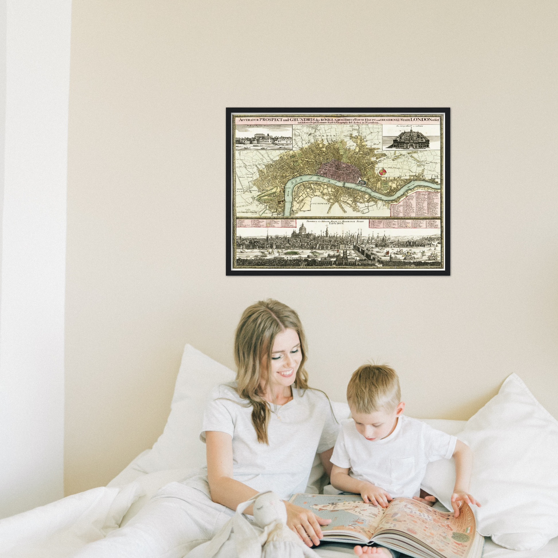 Diese historische Karte ist nicht nur ein dekoratives Element, sondern auch eine persönliche Verbindung zur Vergangenheit. Viele Menschen, die ihre Wurzeln in London haben oder eine besondere Beziehung zur Stadt spüren, wählen dieses Kunstwerk als Geschenk. Es bringt Erinnerungen zurück, erzählt Geschichten und schafft eine bemerkenswerte Verbindung zu alten Zeiten. Ein unvergleichliches Geschenk für Liebhaber der britischen Hauptstadt oder für jeden, der ein Stück Geschichte an den eigenen Wänden schätzen möchte.